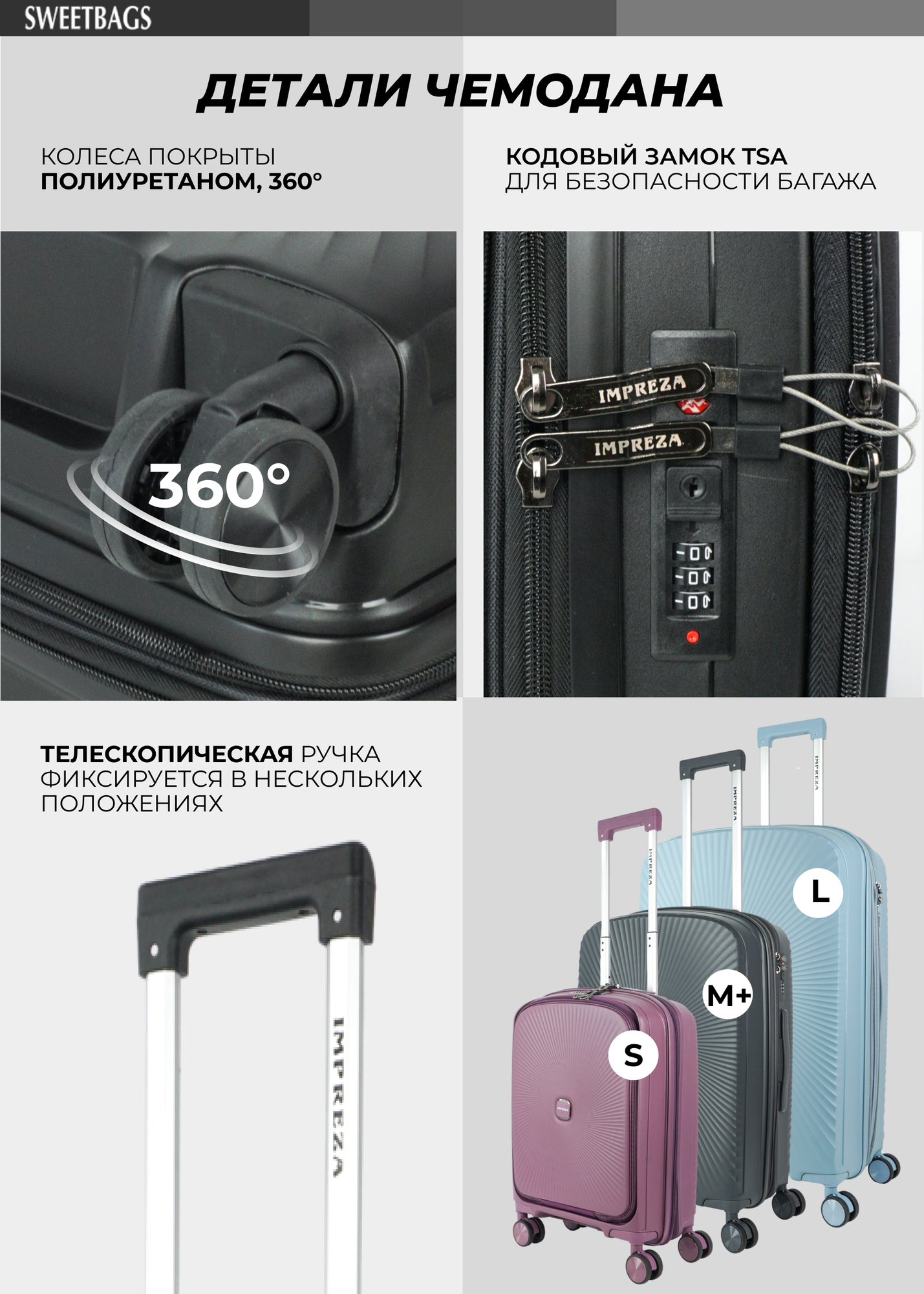 Отзывы на Чемодан Sweetbags маленький (ручная кладь) из полипропилена с расширением на 4-х колесах с TSA замком (Insight) темно-серый S