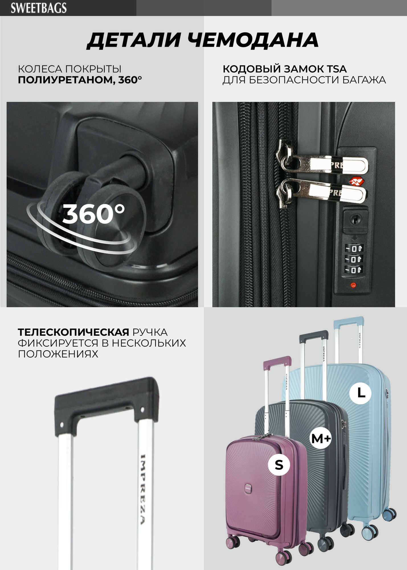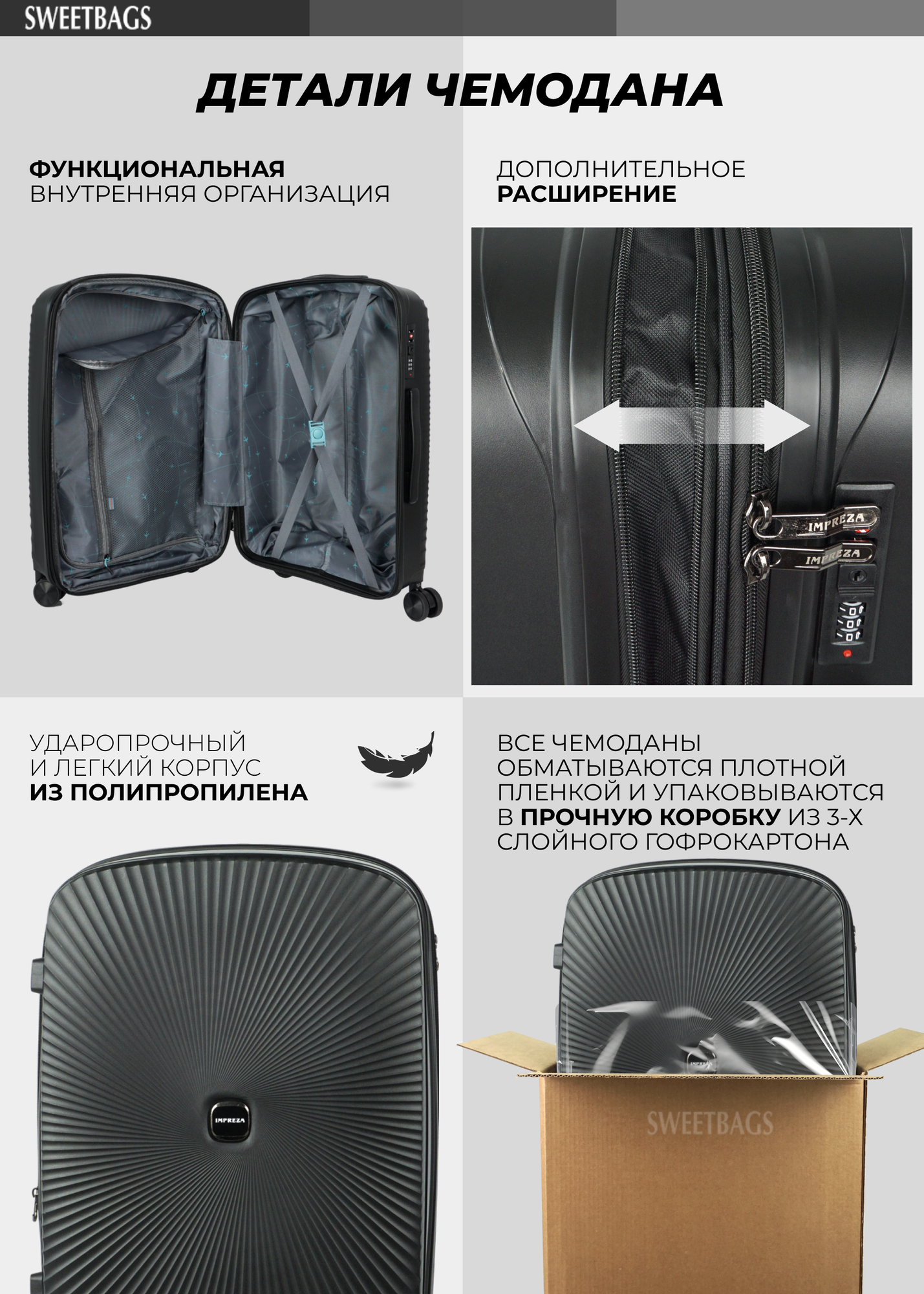 Чемодан Sweetbags средний из полипропилена с расширением на 4-х колесах с TSA замком (Insight) темно-серый M+ 6 990 ₽