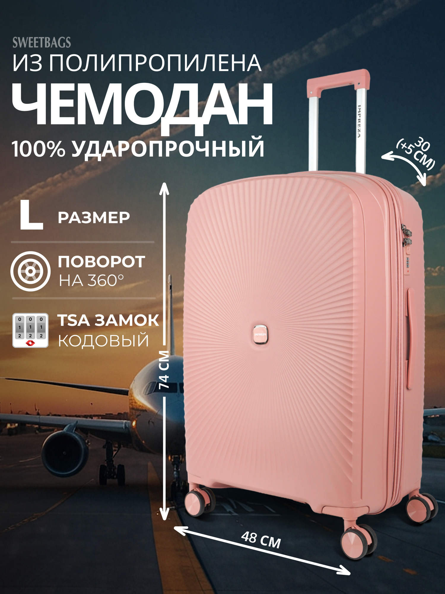 Отзывы на Чемодан Sweetbags большой из полипропилена с расширением на 4-х колесах с TSA замком (Insight) чайная роза L