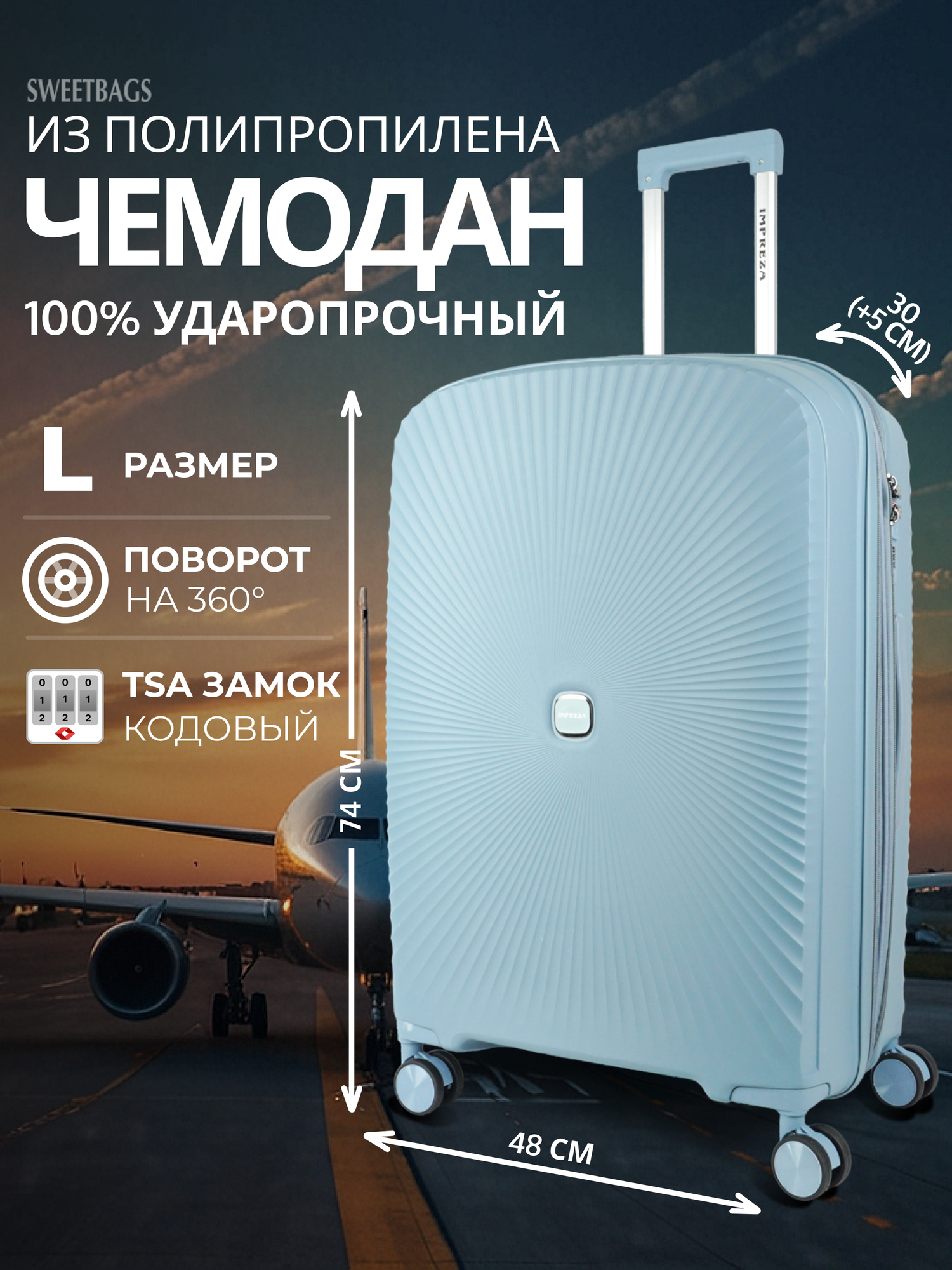 Отзывы на Чемодан Sweetbags большой из полипропилена с расширением на 4-х колесах с TSA замком (Insight) голубой L