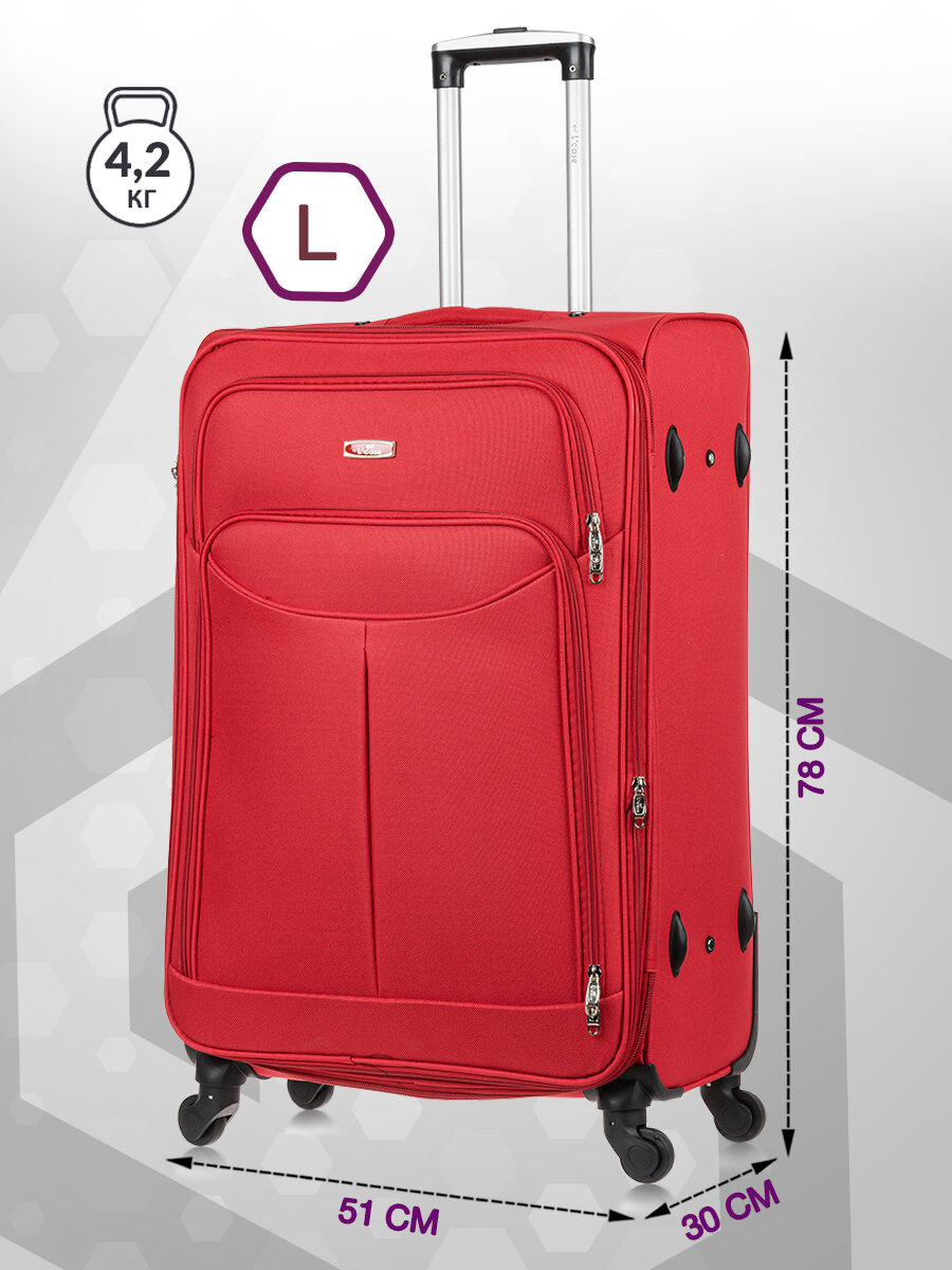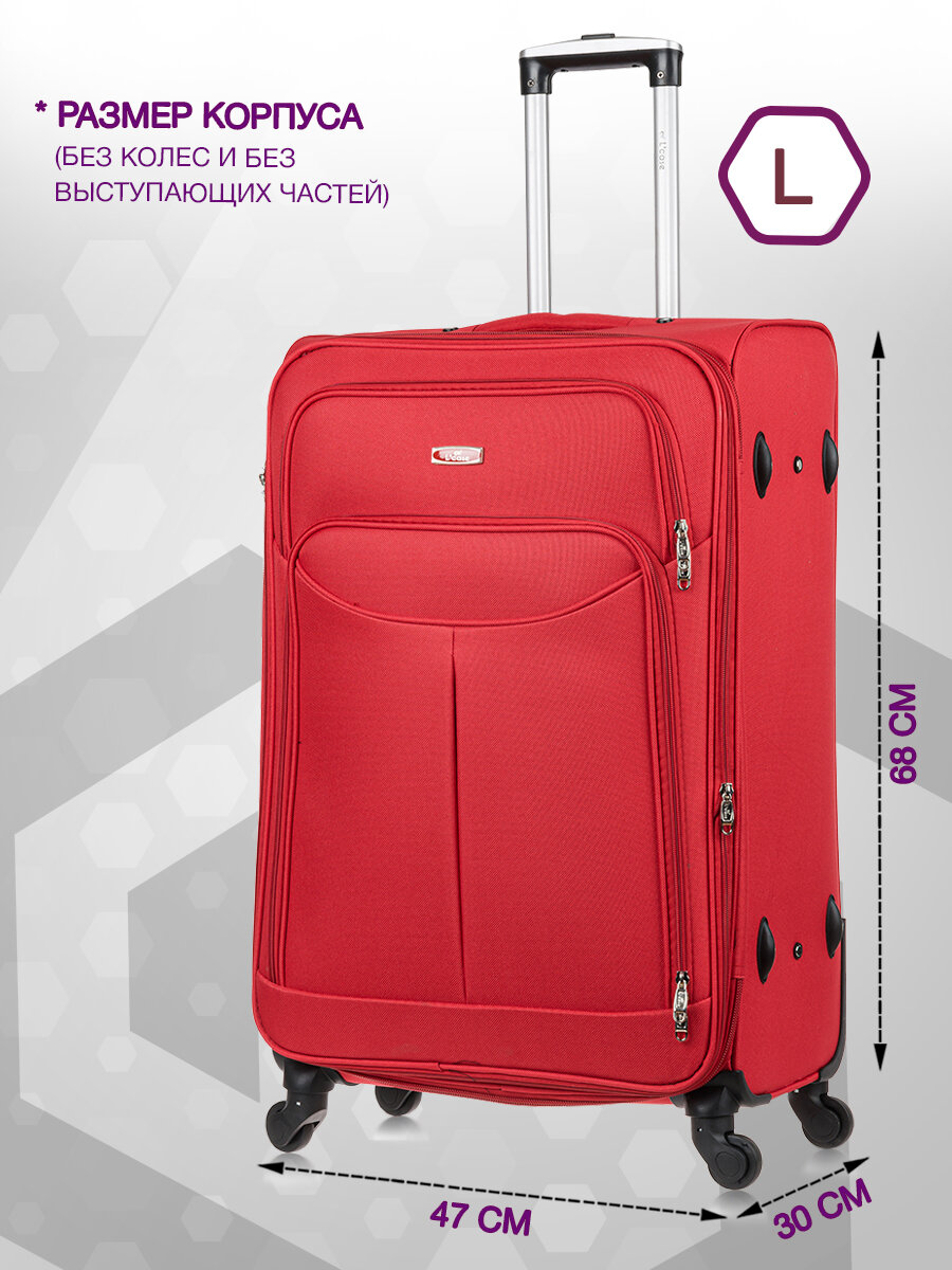 Чемодан на колесах L большой, красный - Чемодан тканевый, семейный Lcase информация: