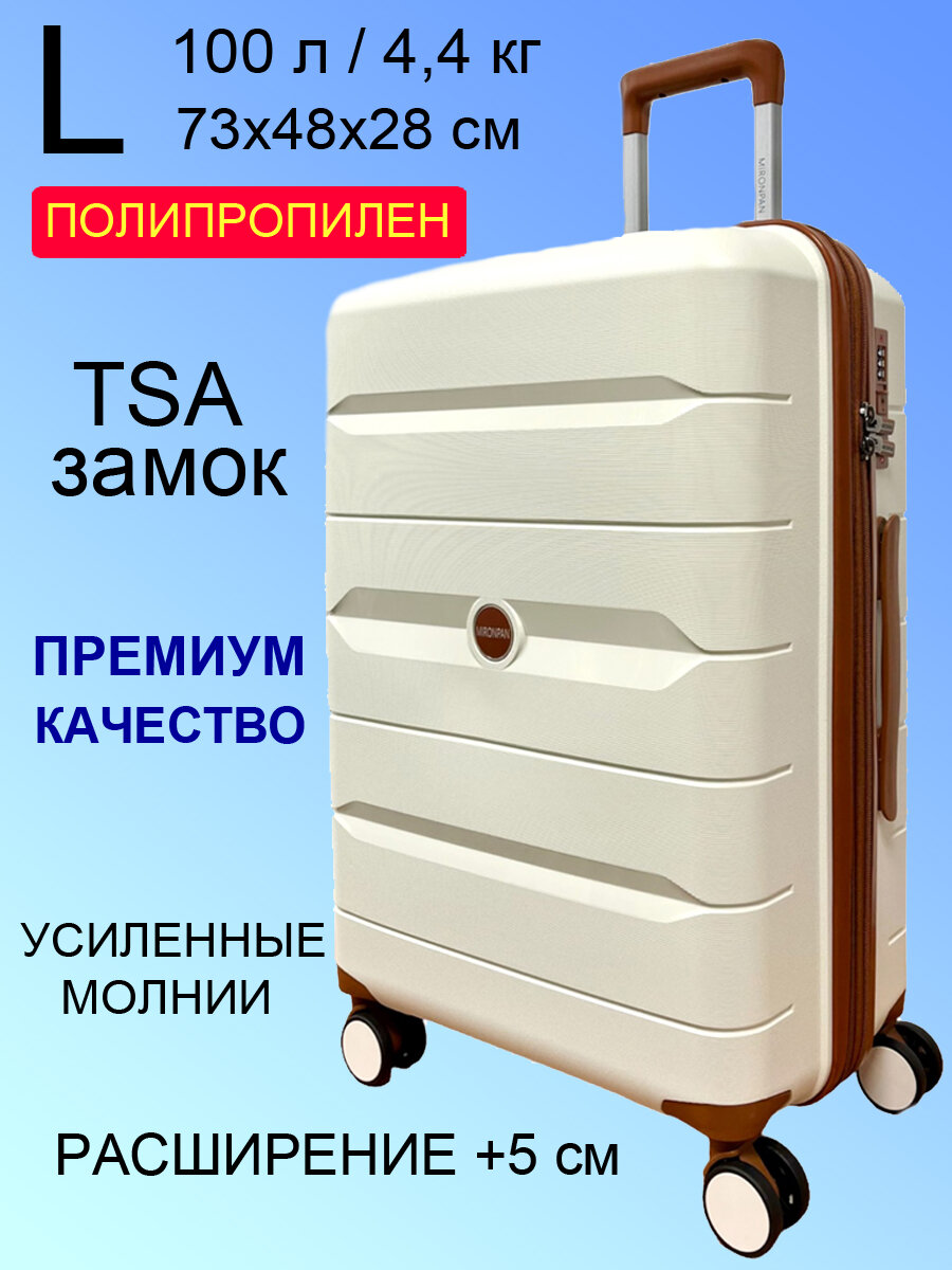 Отзывы на Чемодан из полипропилена MIRONPAN, большой L, 73 см, 100 л, увеличение +5 см, белый