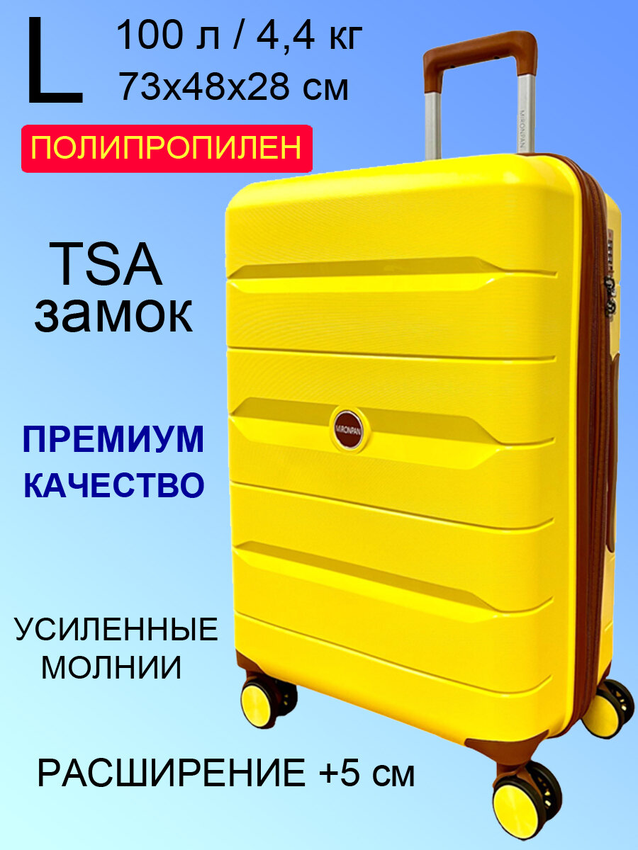 Чемодан из полипропилена MIRONPAN, большой L, 73 см, 100 л, увеличение +5 см, желтый информация: