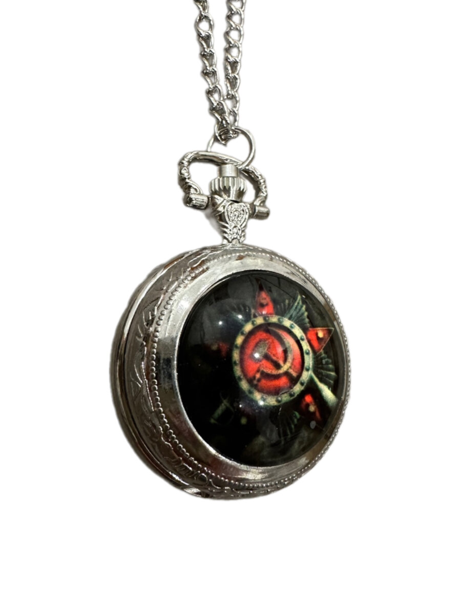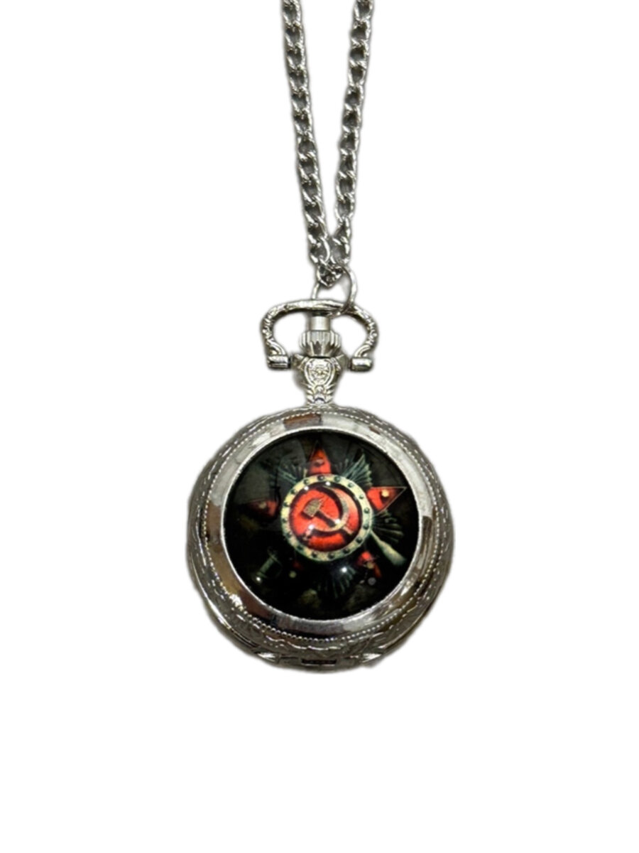 Часы-кулон карманные Серп и молот СССР из сериала Пищеблок цвет: серебро информация: