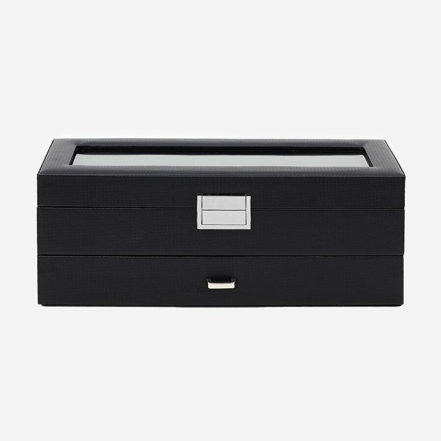10 цен на Шкатулка для часов и хранения ювелирных изделий двухуровневая CloxBox W59B Черная искусственная кожа подарок