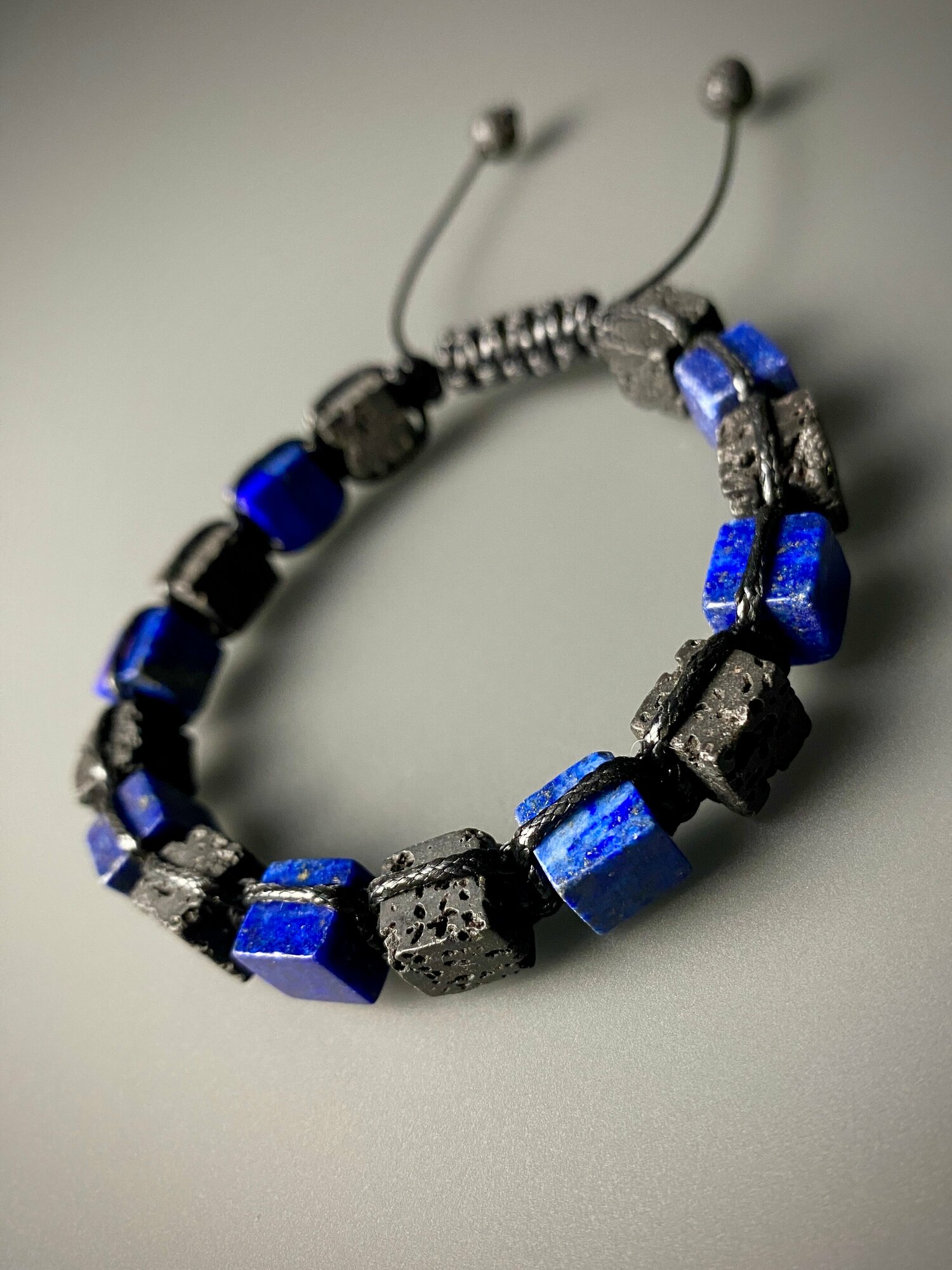 Браслет из натуральных камней лазурит и лава куб квадрат 18-22см 2 500 ₽