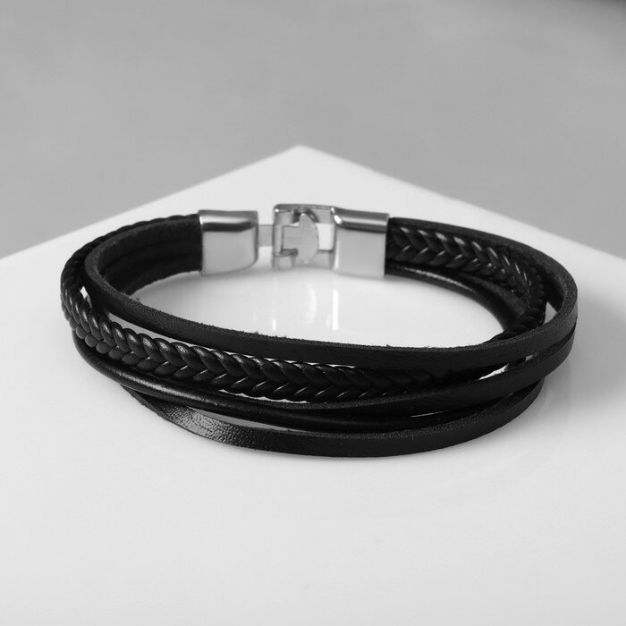 10 цен на Браслет унисекс «Переплетение» классика, 5 нитей, цвет чёрный с серебром, d=7 см