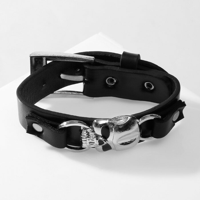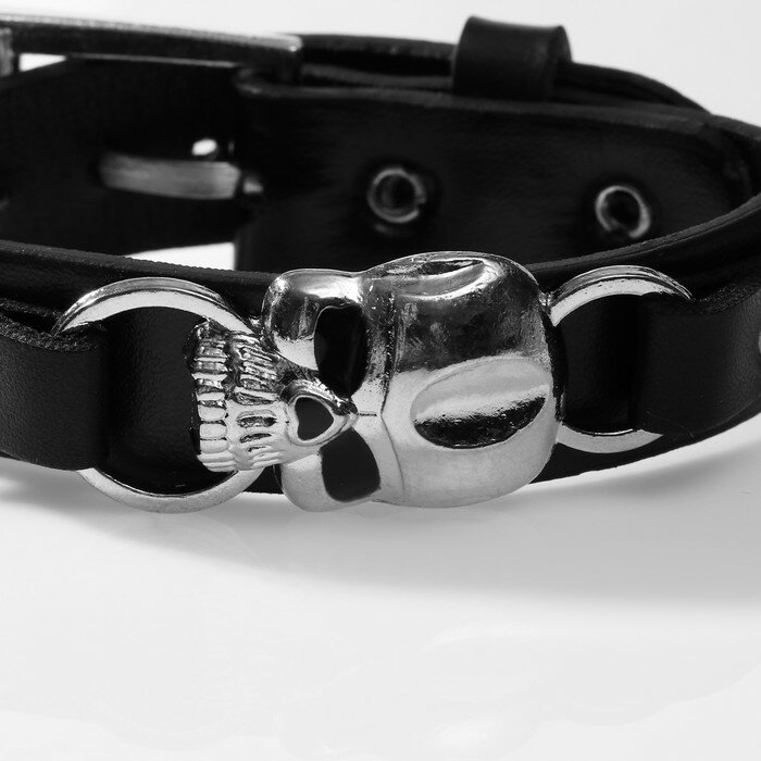 10 цен на Браслет мужской «Череп» на ремешке, цвет серебряно-чёрный, 27 см