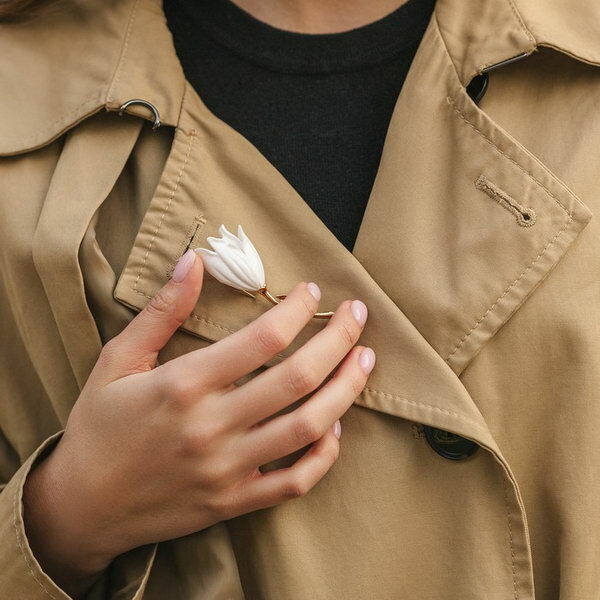 Брошь «Цветок» лилия, цвет белый в золоте информация: