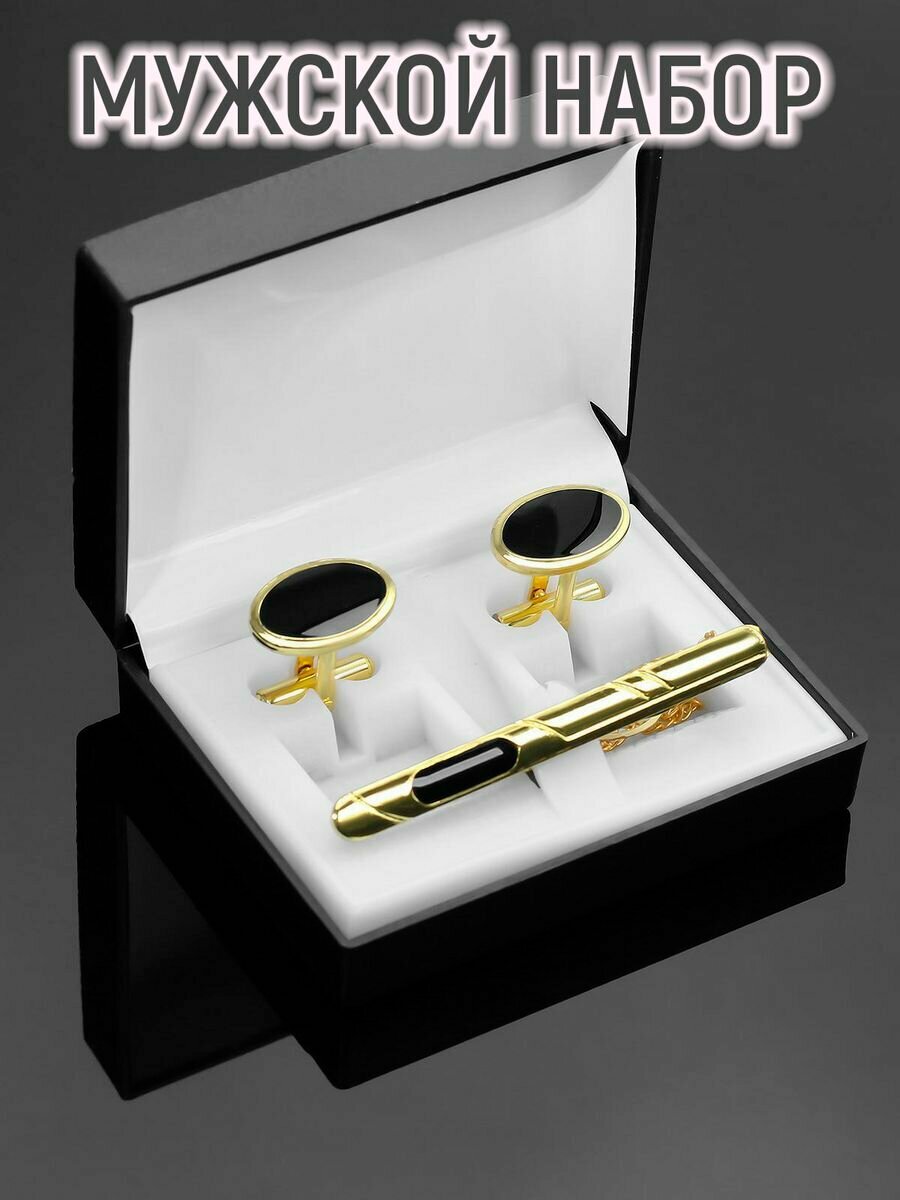 Отзывы на Набор мужской «Запонки + Зажим (6 см) для галстука» овал с эмалью, цвет чёрный в золоте