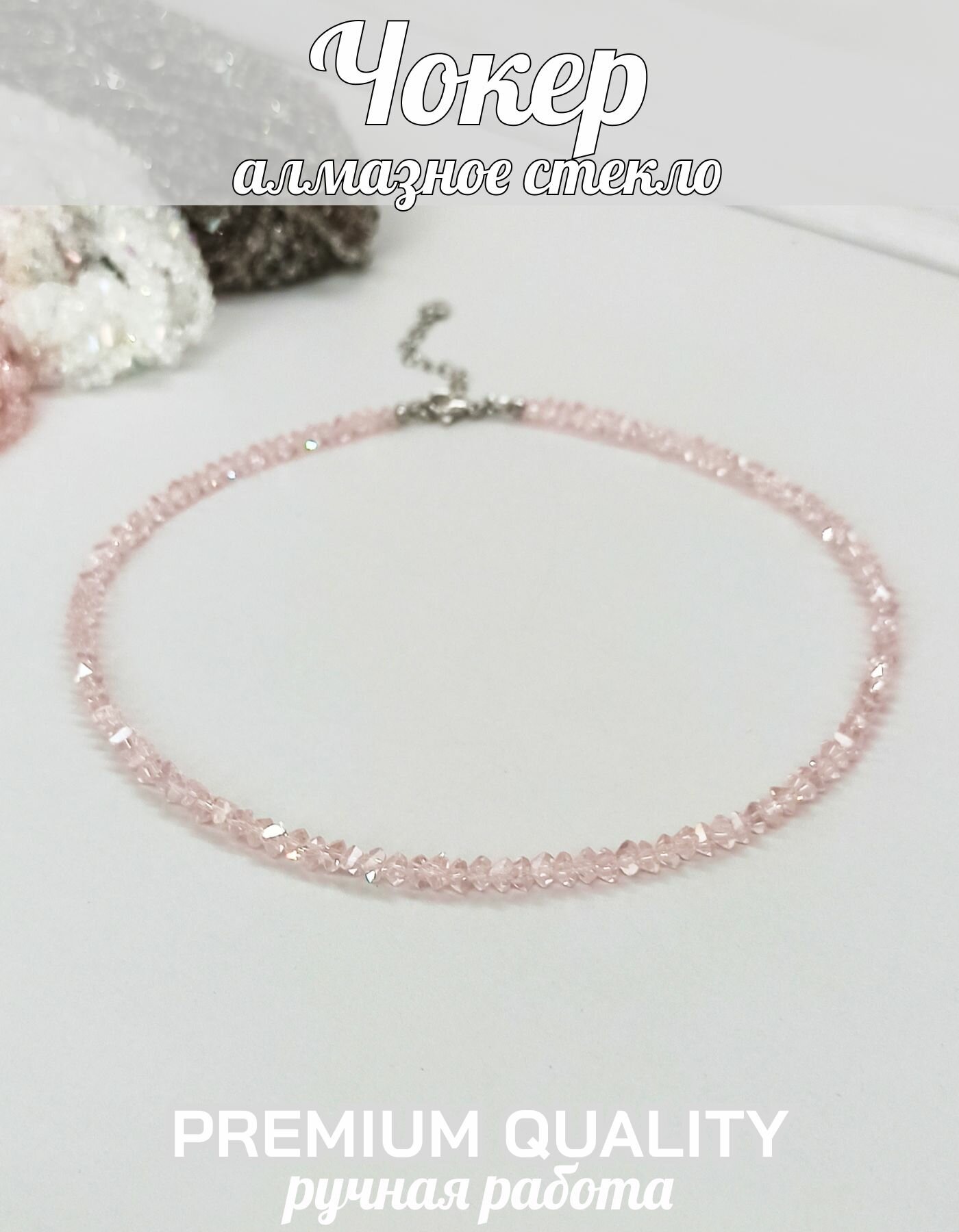 Чокер MESCHERYAKOVA bags & jewerly, стекло, хрусталь, кристалл, длина 34 см, розовый, серебряный 613 ₽