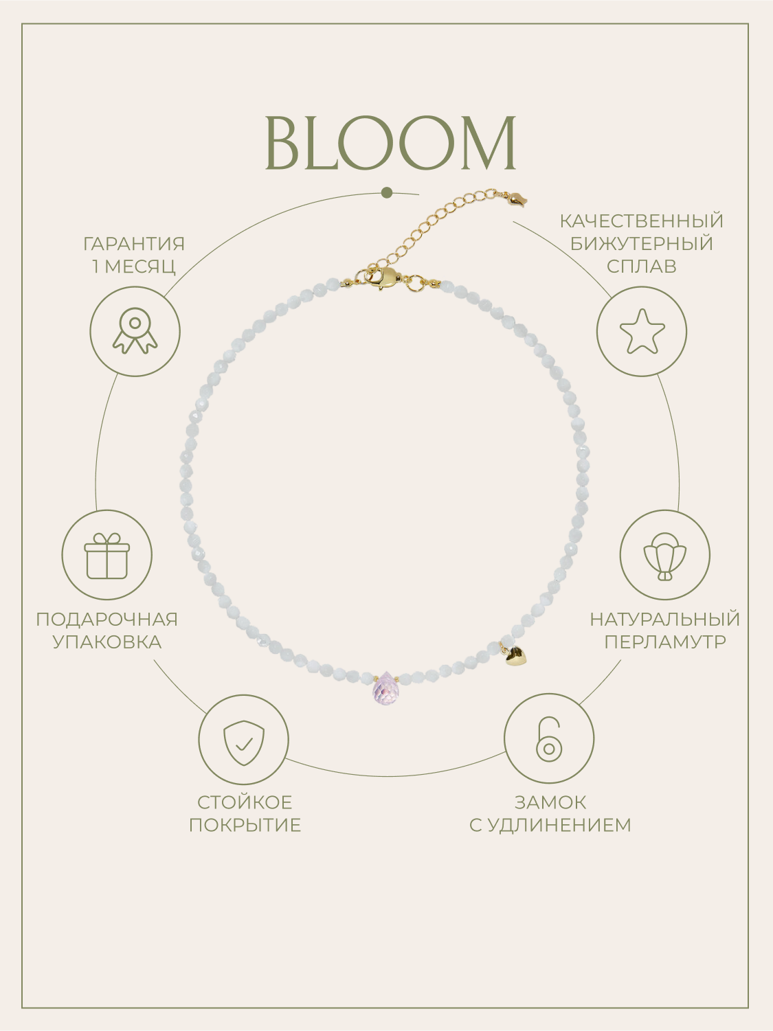 Отзывы на Чокер из перламутра в огранке со вставкой в форме капли из ювелирного стекла Bloom