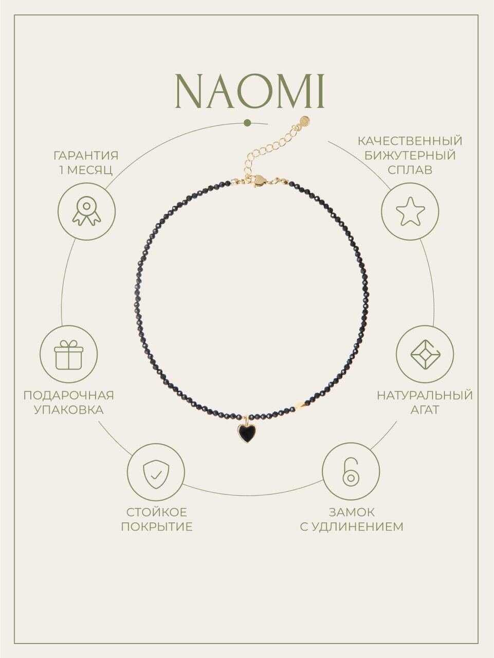 10 цен на Чокер из натурального камня, Регулируемый 36 см (+4), Колье Naomi на шею из Агата, Украшение с подвеской в форме сердца с покрытием эмалью, Подарок на 14 февраля, 8 марта для женщин, девушек, MOON SOUL
