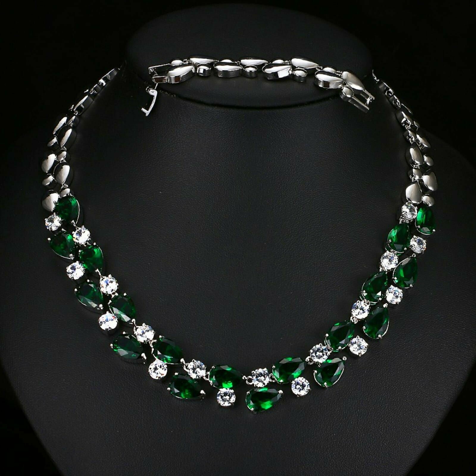 10 цен на Колье "Восторг" Свадебное колье. Ожерелье женское с изумрудными кристаллами.