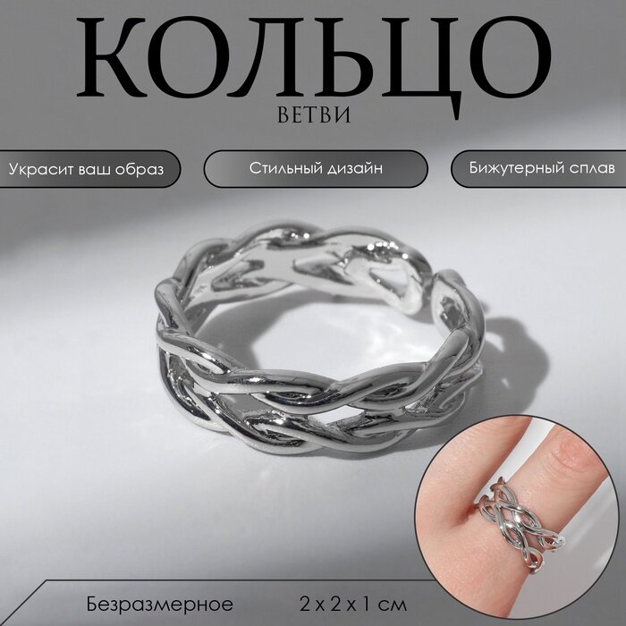 10 цен на Кольцо "Волна" завитое, цвет серебро, безразмерное 7573499