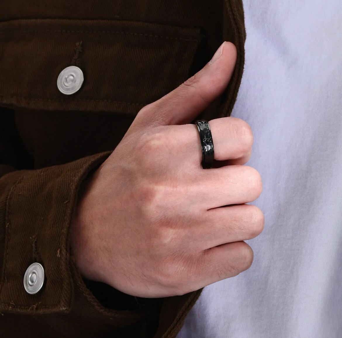 Отзывы на Размер 22,25. Кольцо из нержавеющей стали с кованой поверхностью и и ступенчатыми краями/ чёрное