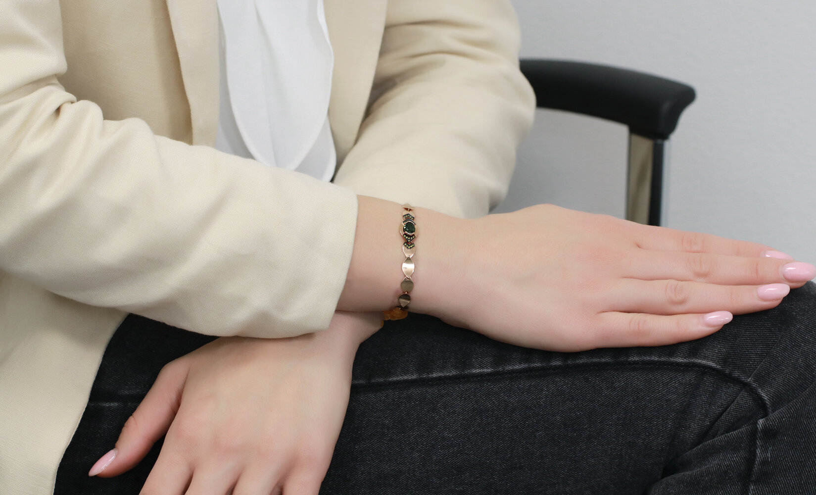 Отзывы на Золотой браслет Diamant onlineбр093-26ск-са с фианитом и турмалином, Золото 585°, размер 20