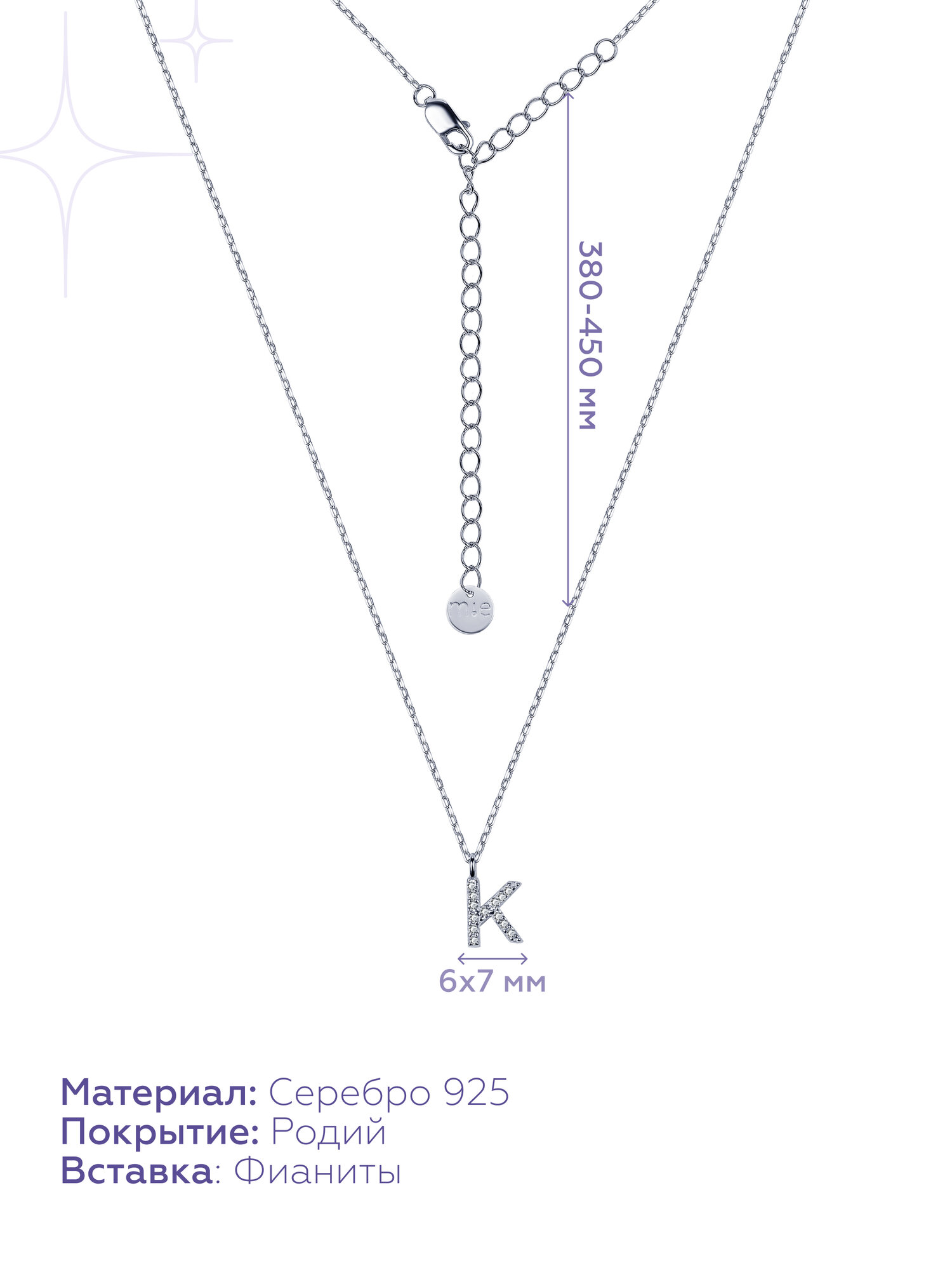 Подвеска MIESTILO женское серебро 925 с камнями буква К информация: