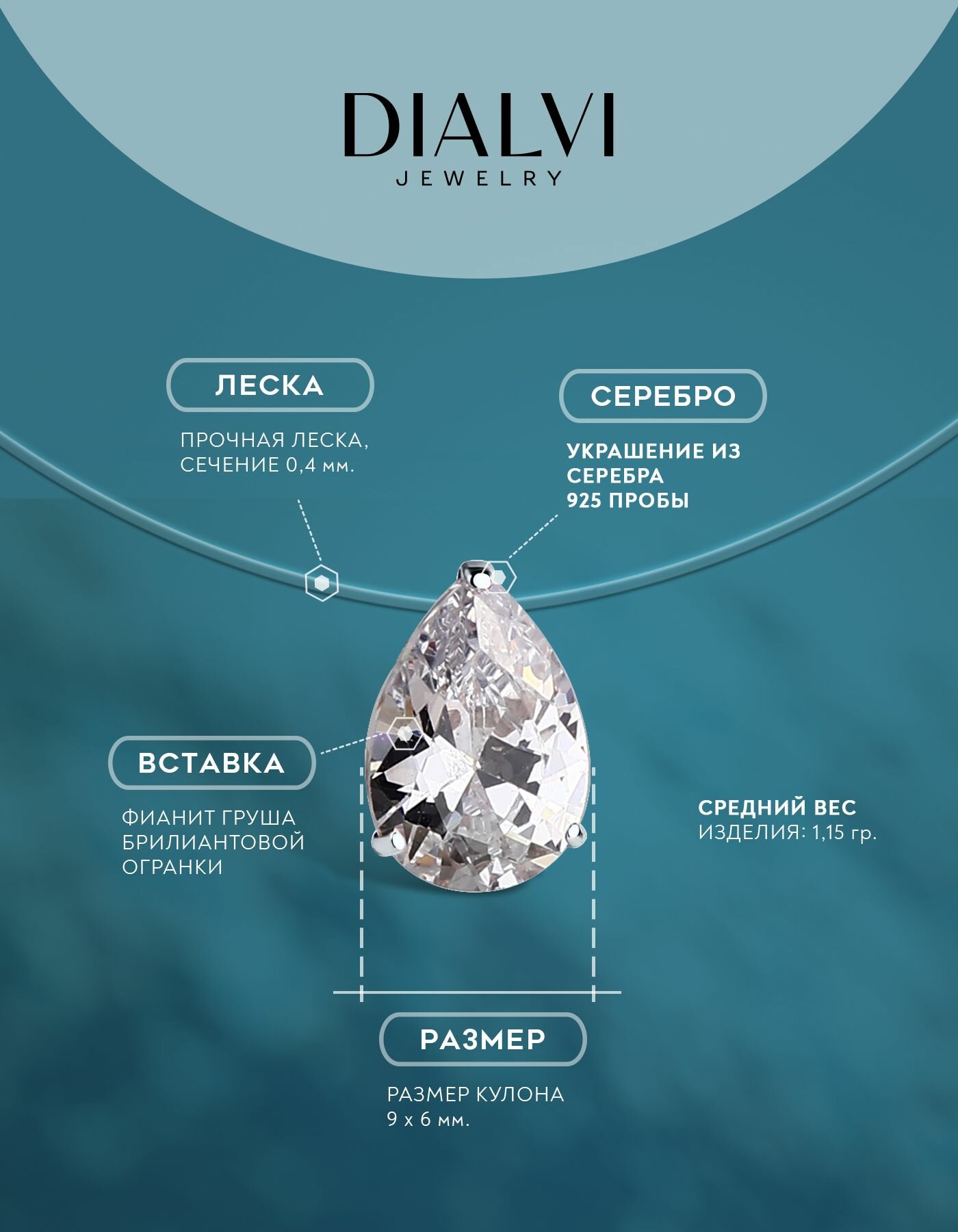 10 цен на Колье на леске Капля с фианитом серебро размер 35