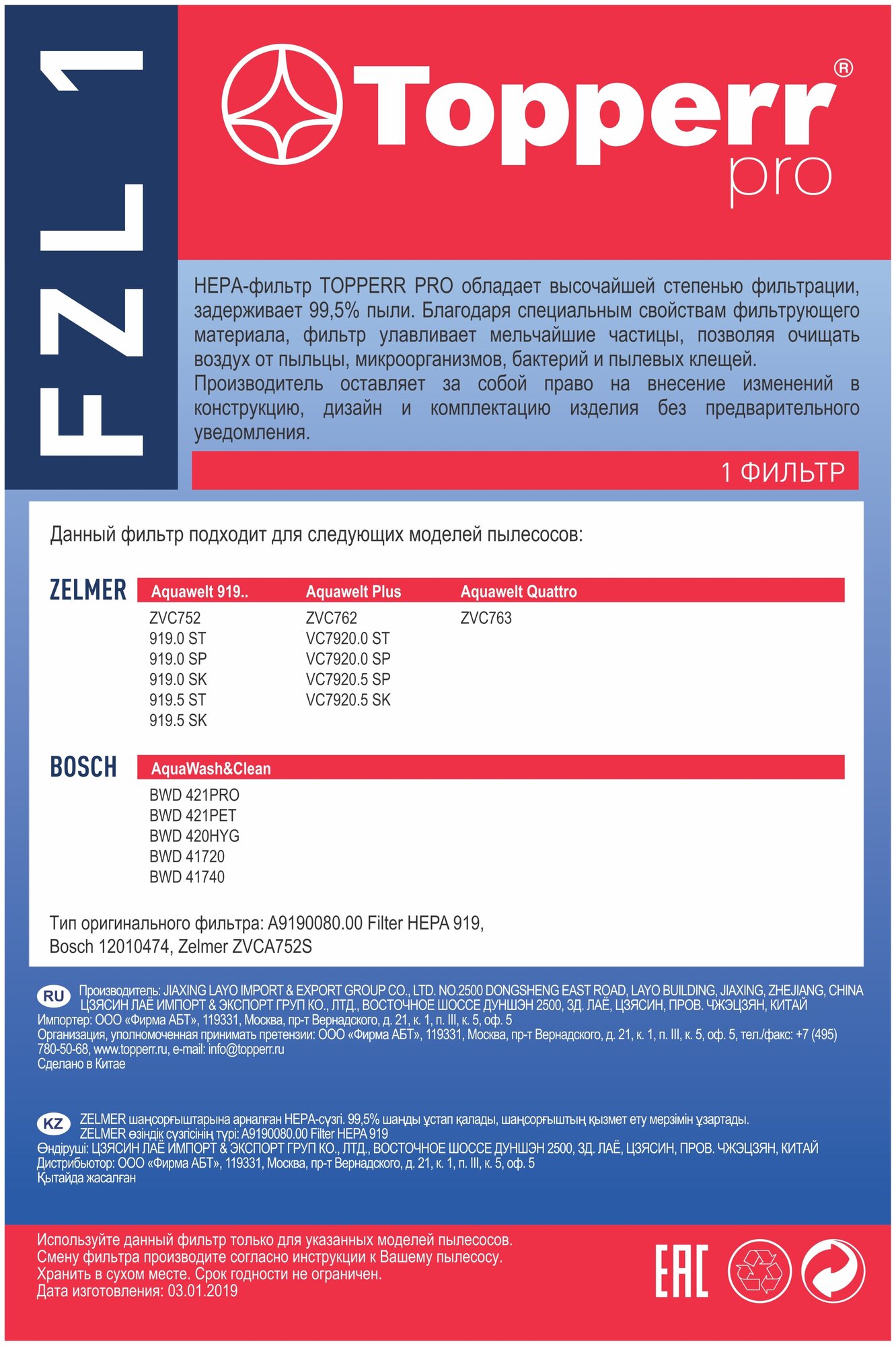 Topperr нера-фильтр для пылесосов BOSCH, ZELMER, 1 шт., FZL 1 информация: