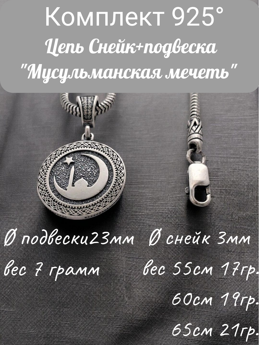 10 цен на Серебряный комплект "Мусульманская мечеть" 925 проба, чернение 60см
