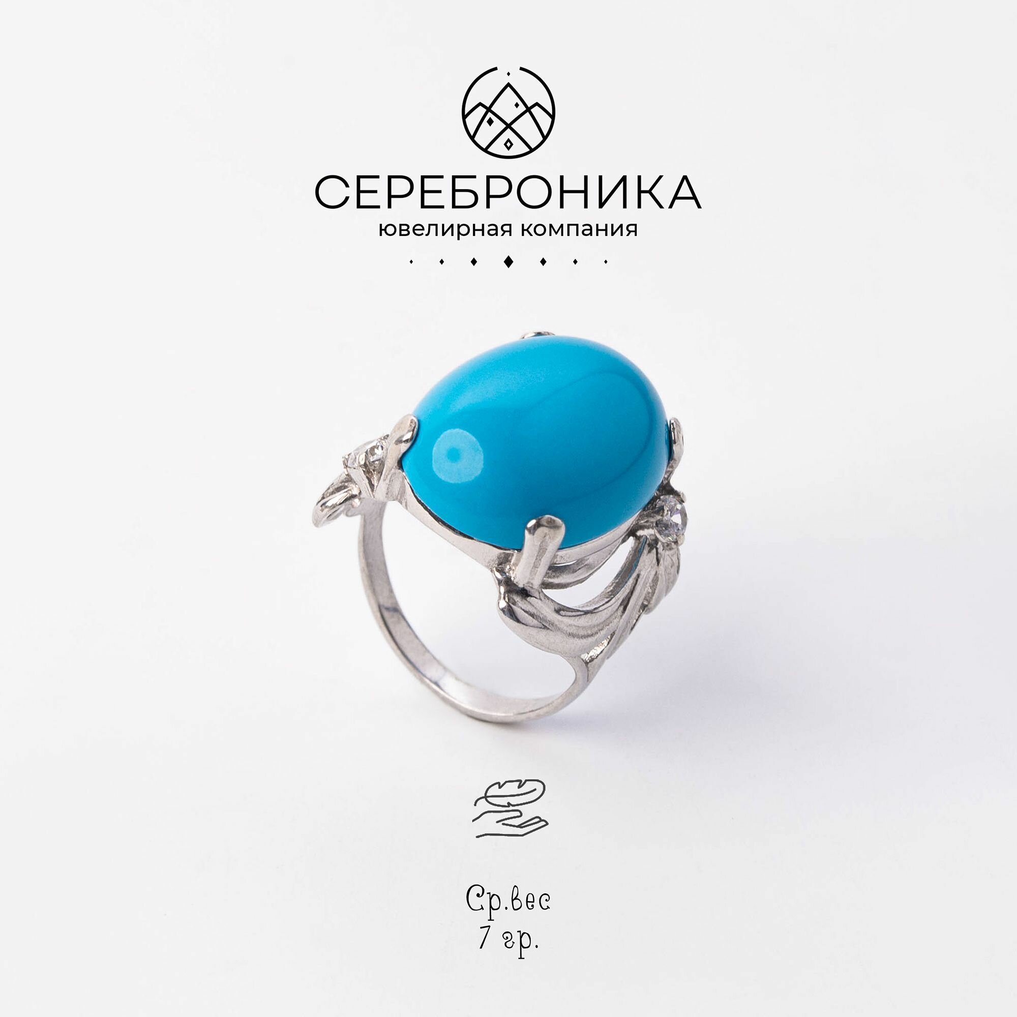 Сереброника, комплект украшений серьги и кольцо с бирюзой и фианитом из серебра 925 пробы информация: