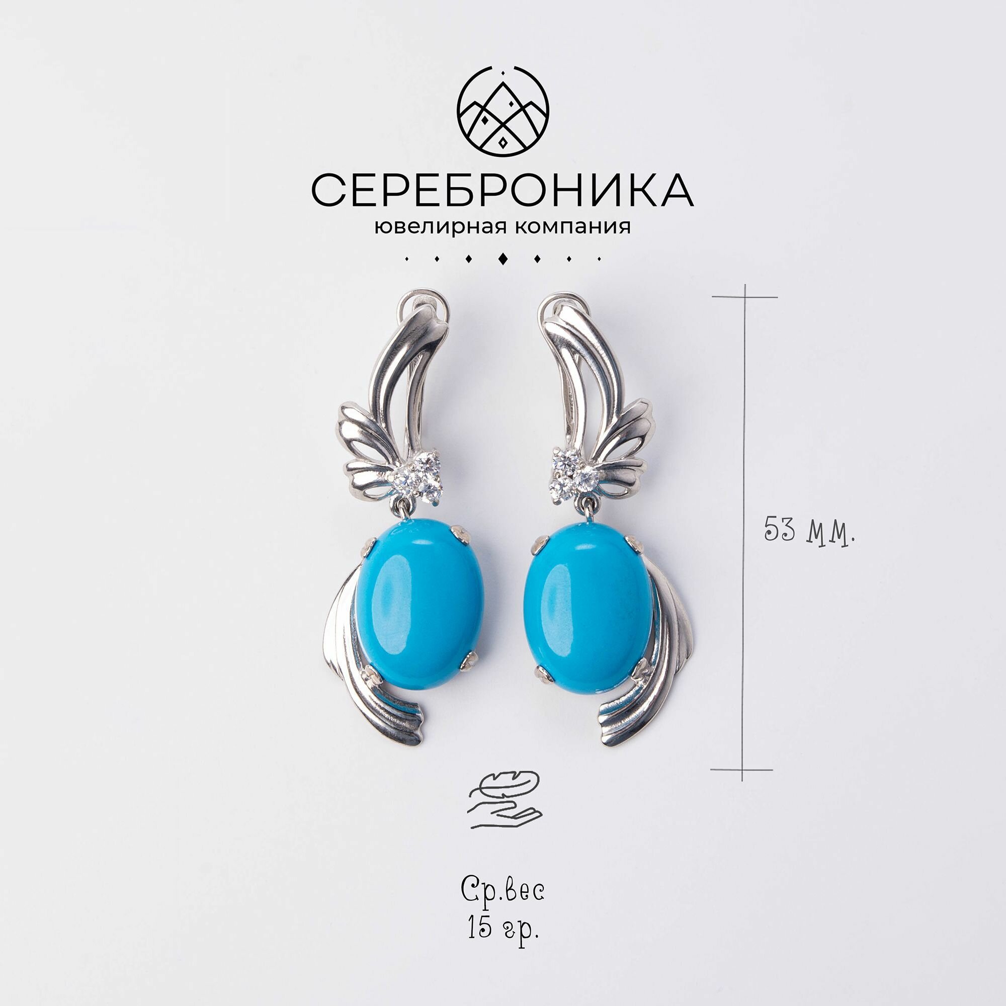 Отзывы на Сереброника, комплект украшений серьги и кольцо с бирюзой и фианитом из серебра 925 пробы