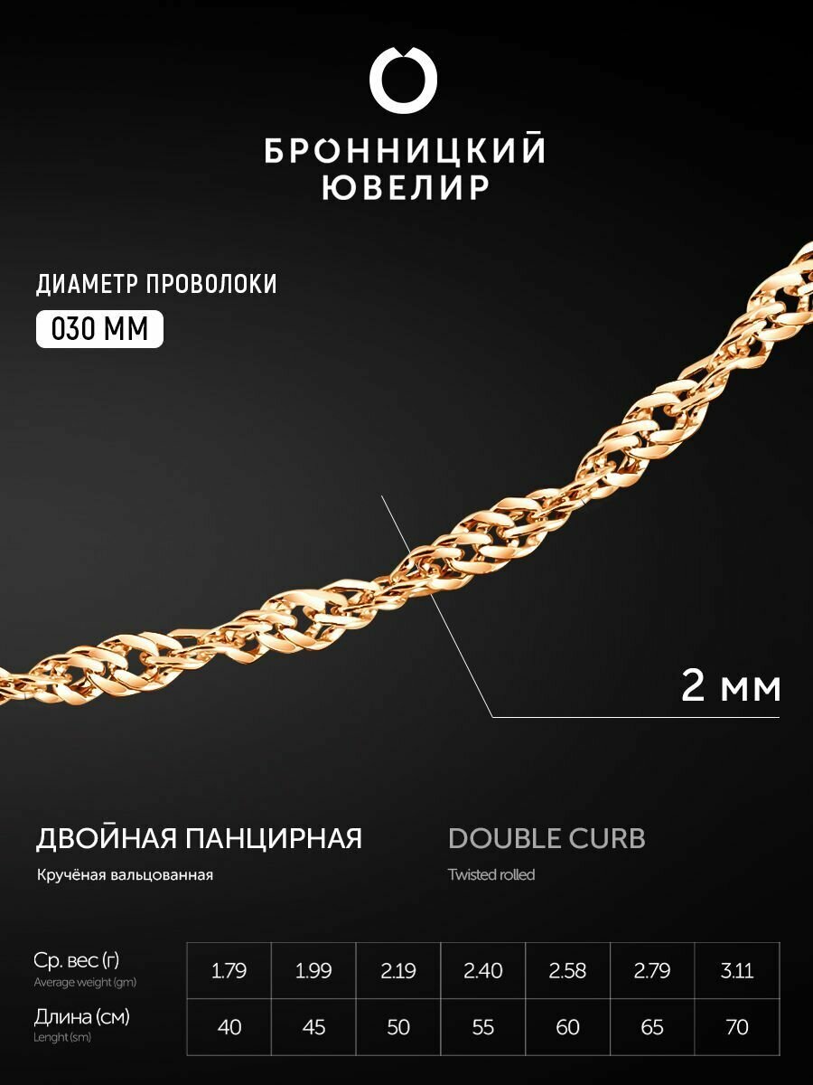 Бронницкий ювелир Цепочка серебряная автоматного плетения "Двойная панцирная (Сингапур)" покрытие золото женская, детская информация: