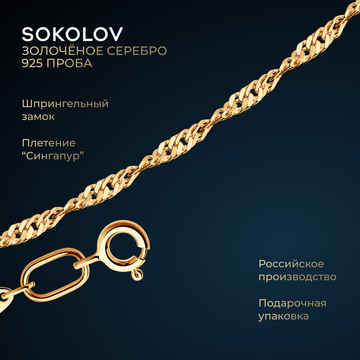 Цепь SOKOLOV из золочёного серебра 988090402, размер 50 см