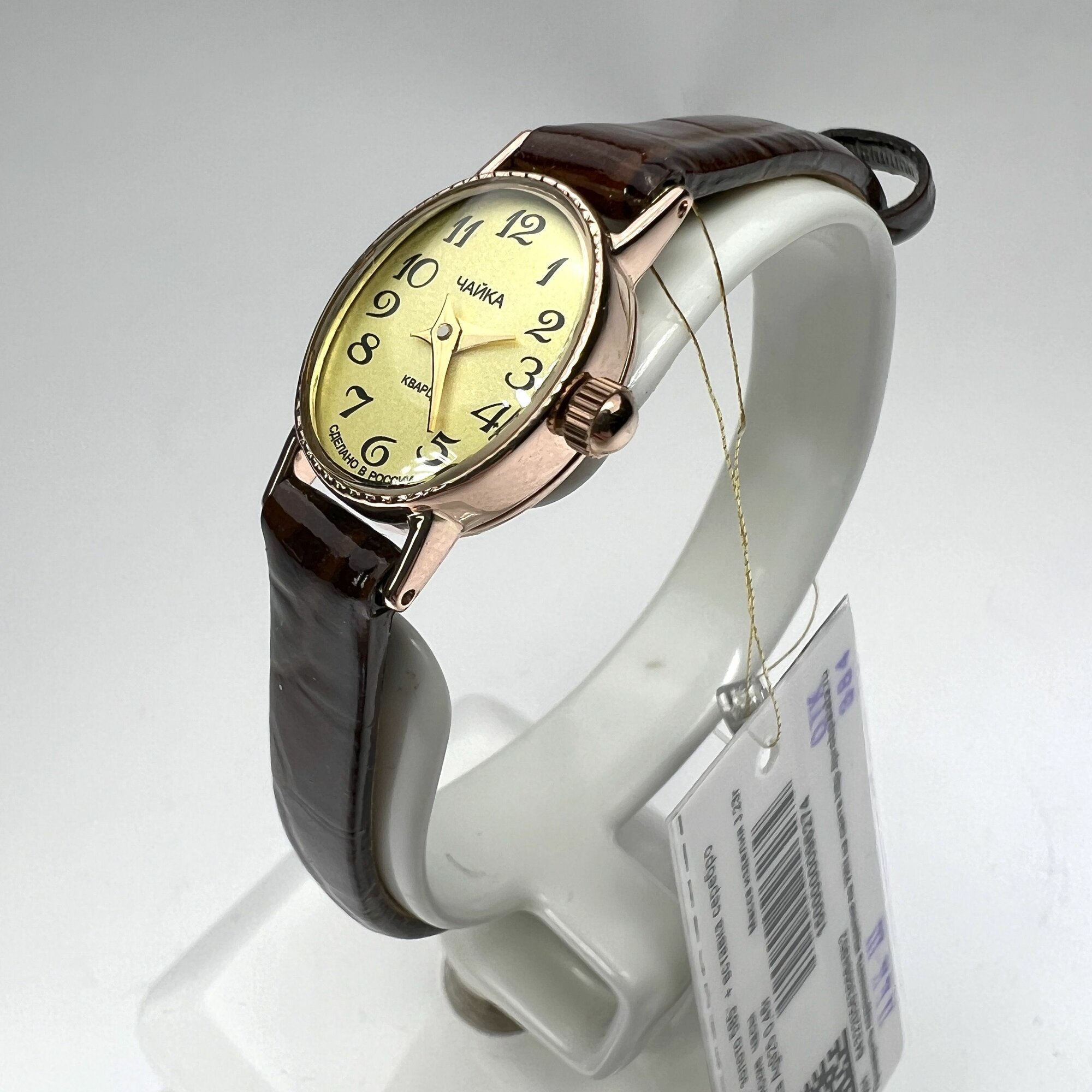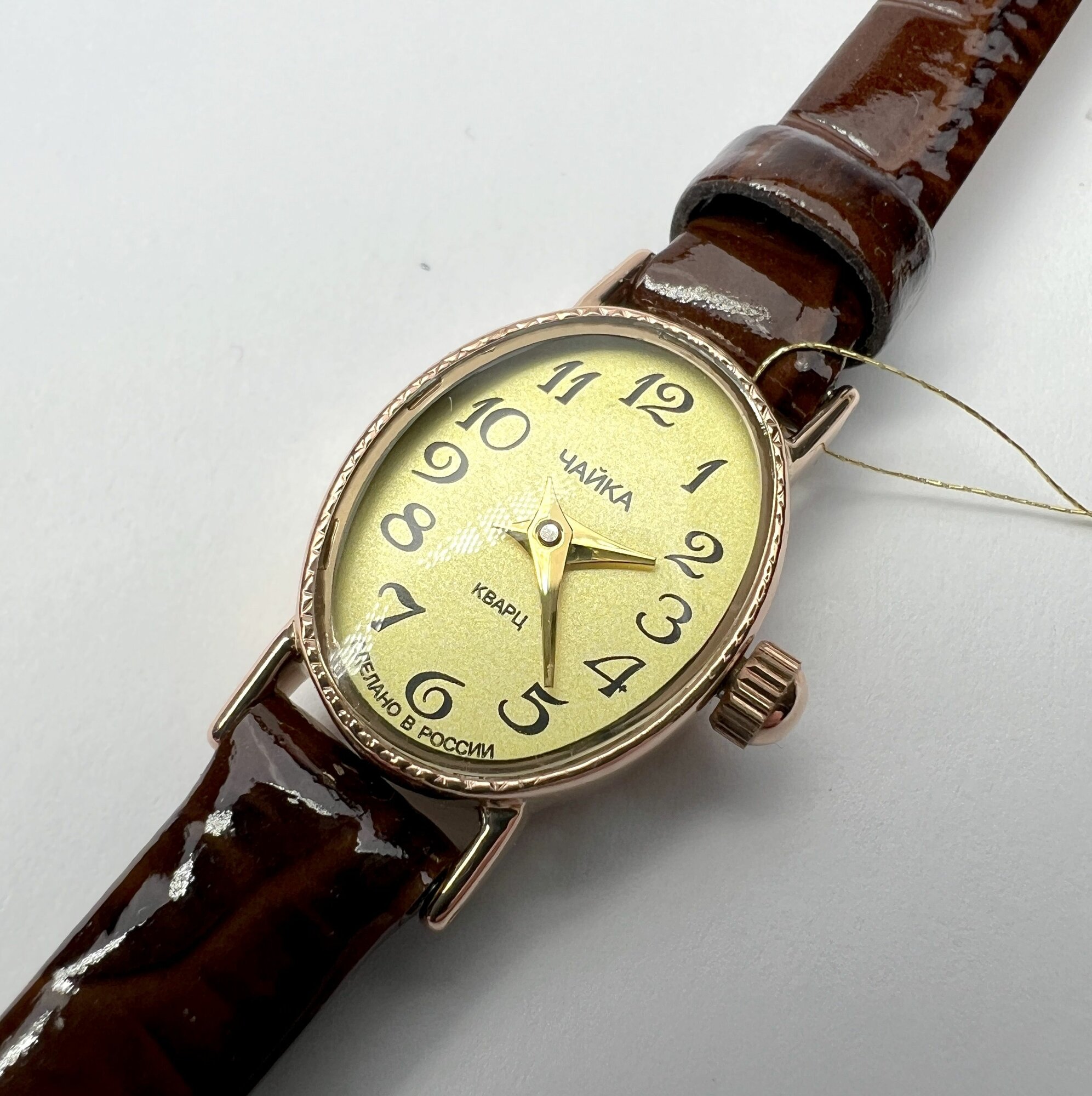 Отзывы на Чайка, Часы наручные женские золотые кварцевые с кожаным ремешком "Нежность" 44330-2.405