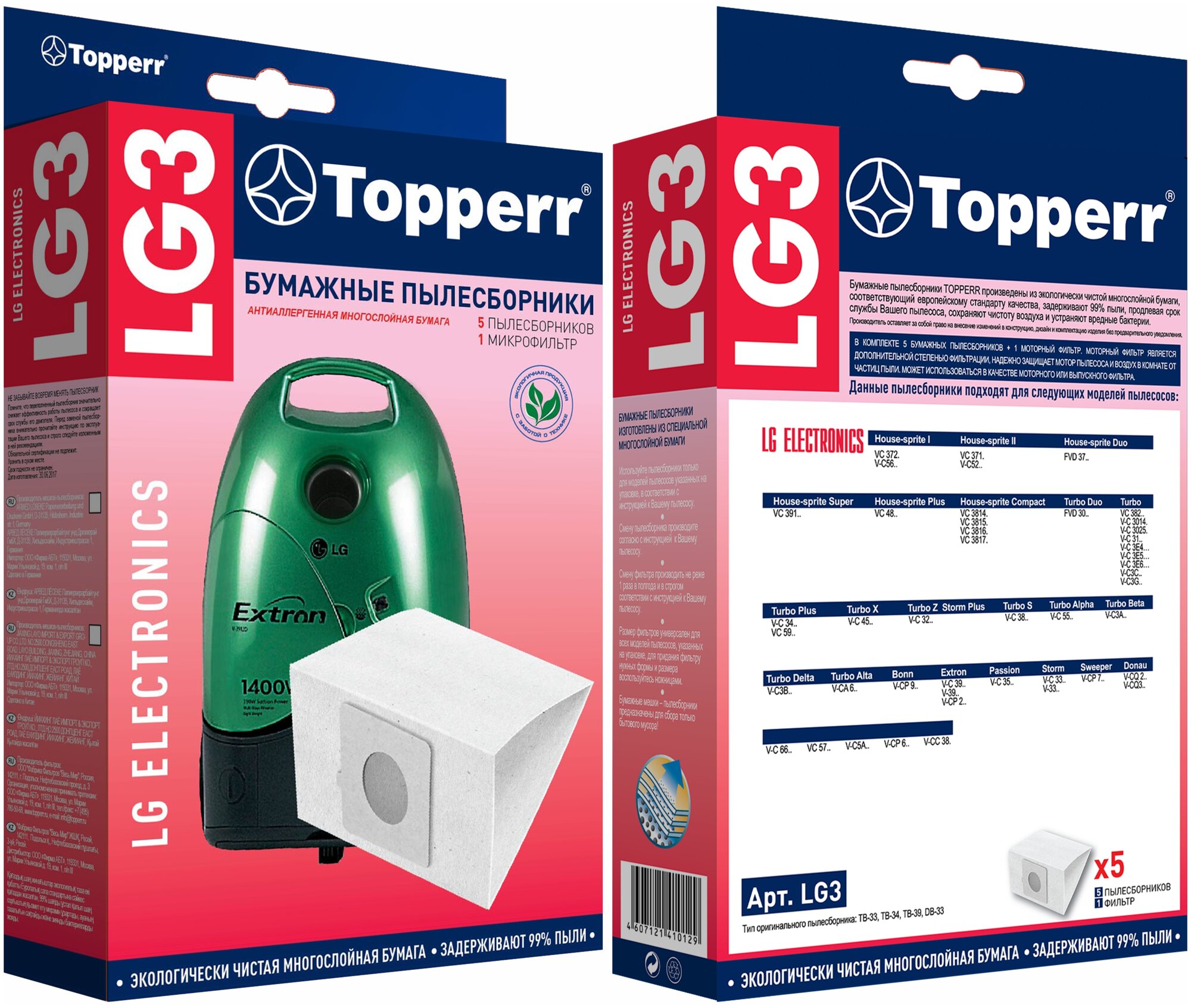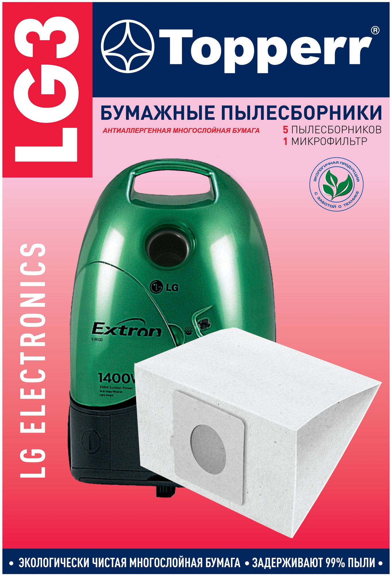 Бумажные пылесборники Topperr filter LG 3, для пылесосов(см описание), 5 шт в упаковке 773 ₽