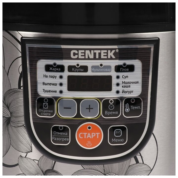 Мультиварка 5.0Л 700ВТ 38 прогр антиприг покр LED диспл нерж сталь CENTEK 9 385 ₽