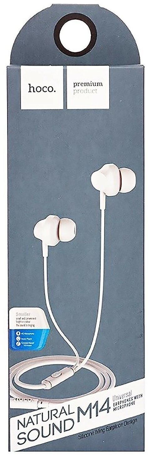 Наушники Hoco M14, проводные, вакуумные, микрофон, Jack 3.5, 1.2 м, белые