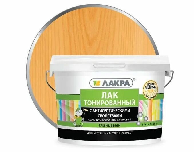Лак Лакра Тонированный с антисептическими свойствами орегон, глянцевая, 2.5 кг, 2.5 л