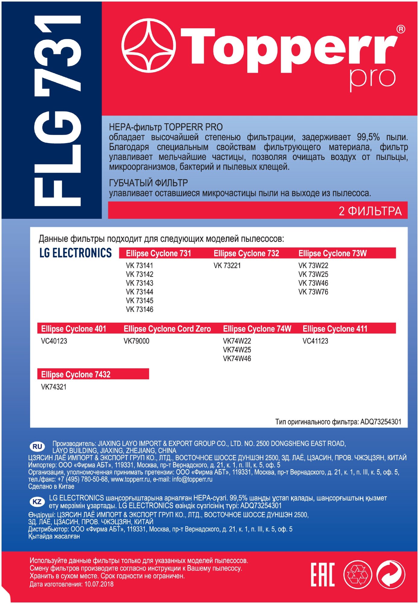 Фильтр Hepa Topperr д/пылесосов LG VC 401..VK79...,73... (adq73254301) 1131 FLG 731 1131 FLG 731 информация:
