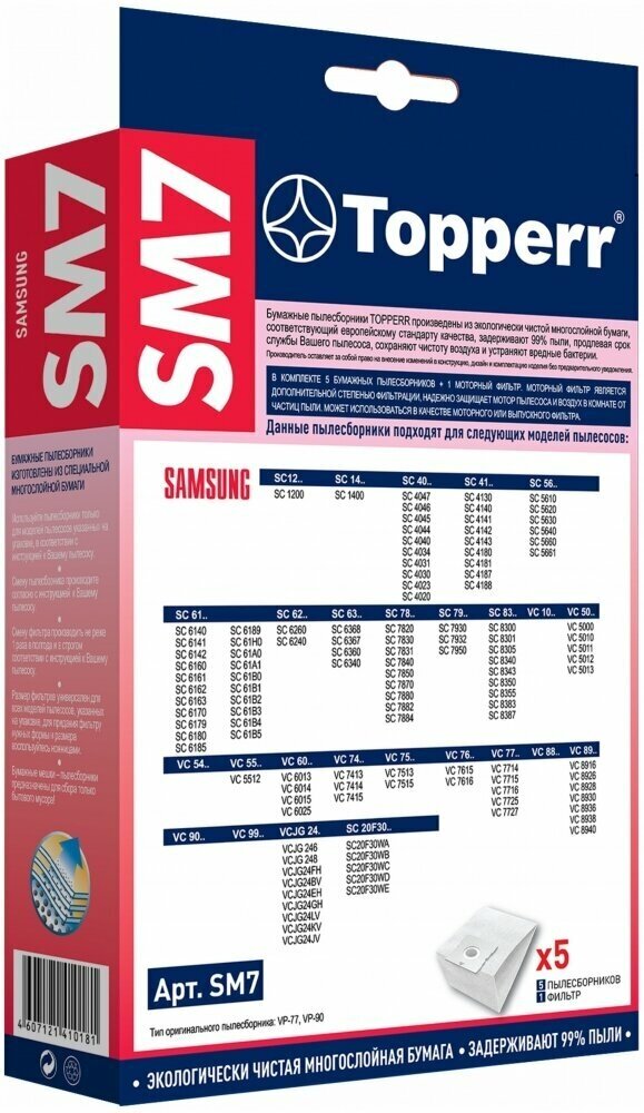 Мешок для пылесоса Samsung, Самсунг бумажные пылесборники, универсальный фильтр на пылесос в подарок, Topperr SM7 информация: