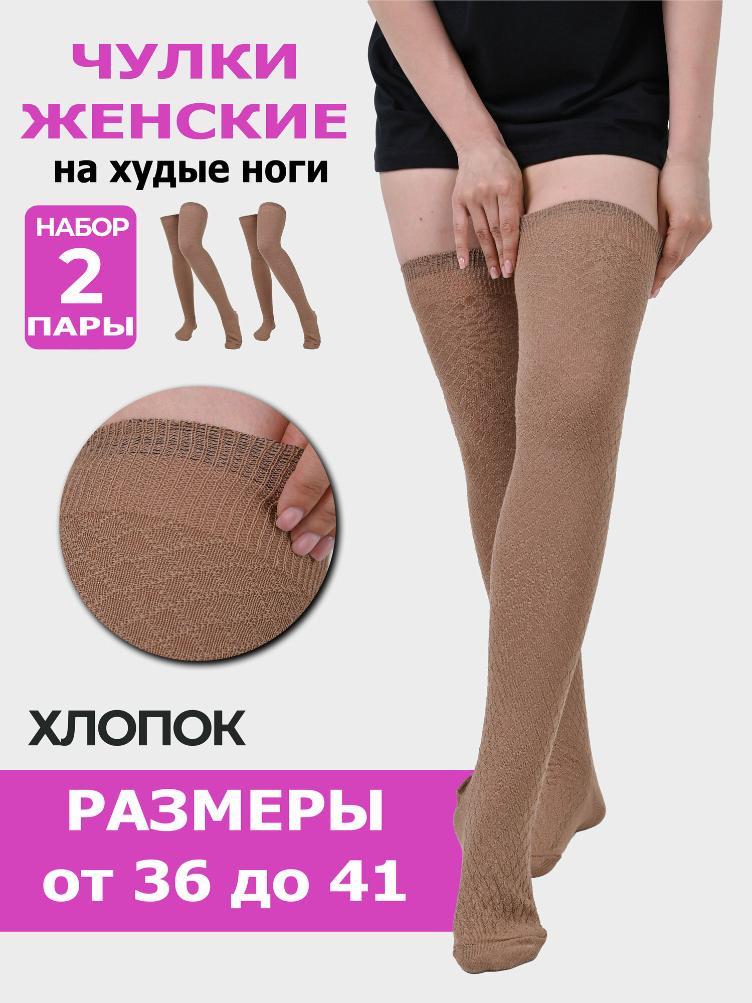 C-17 Комплект женских чулок из хлопка делика, на резинке, бабушкины - 2 пары 23 Бежевый 403 ₽
