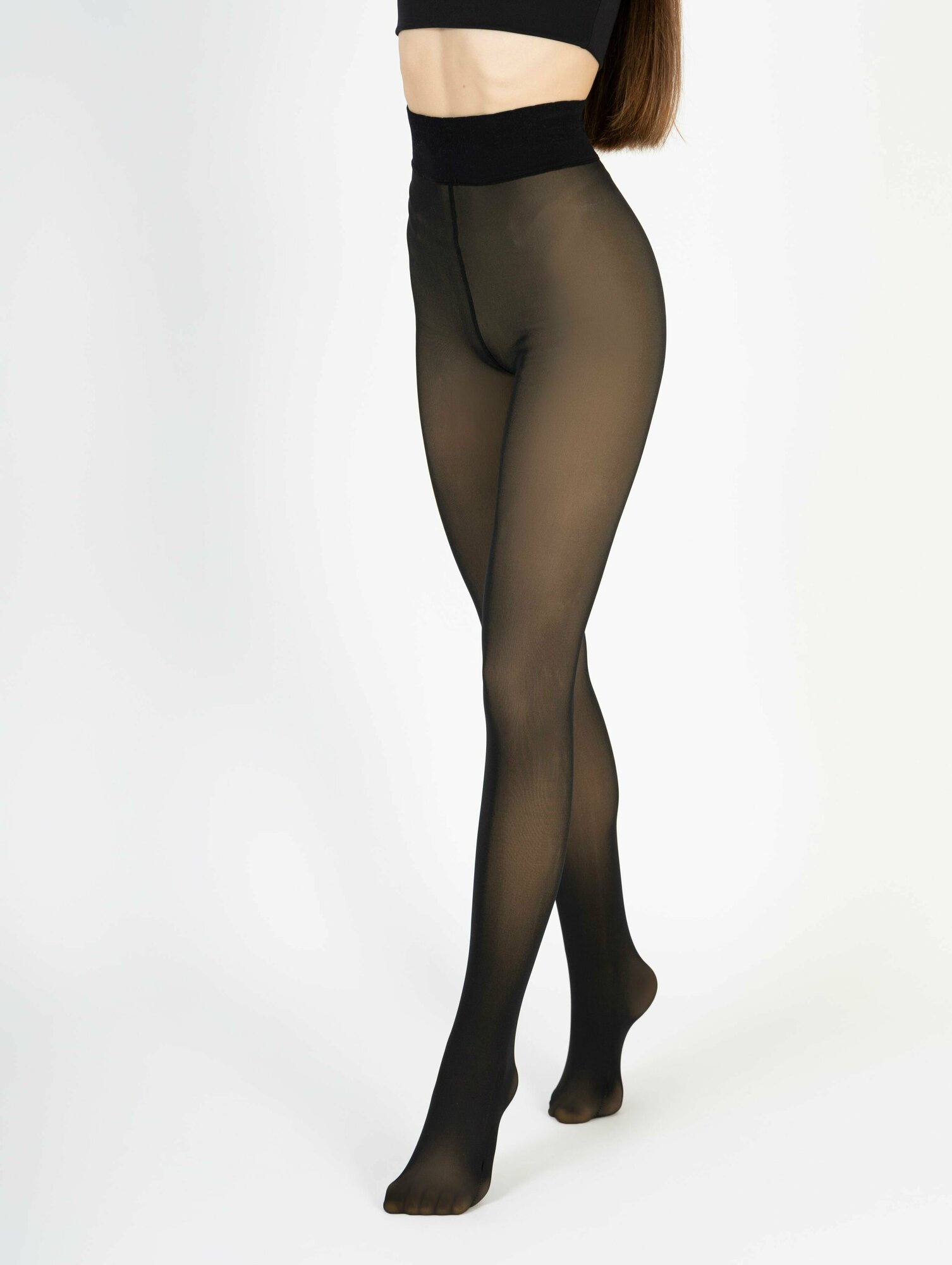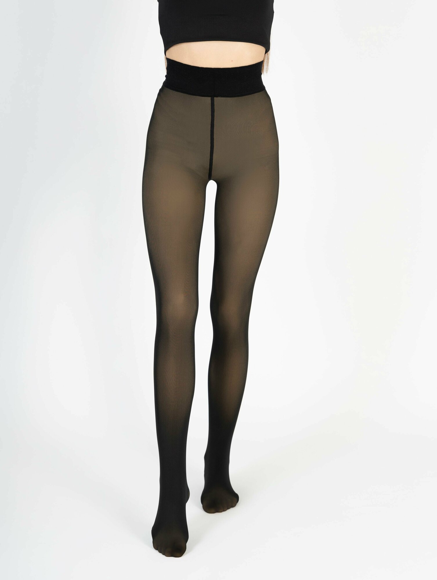 10 цен на Колготки женские с эффектом вторая кожа "second skin" черные с широким поясом с мехом размер 42-46