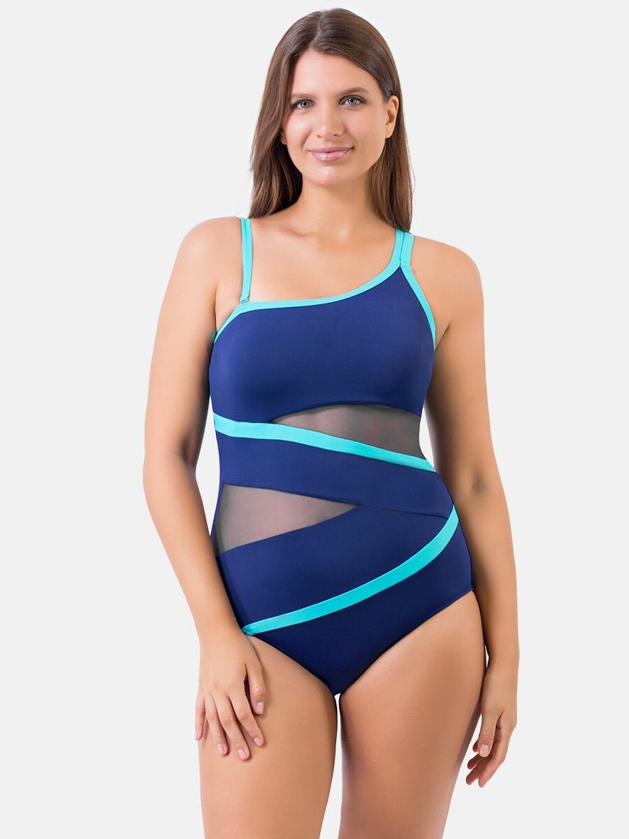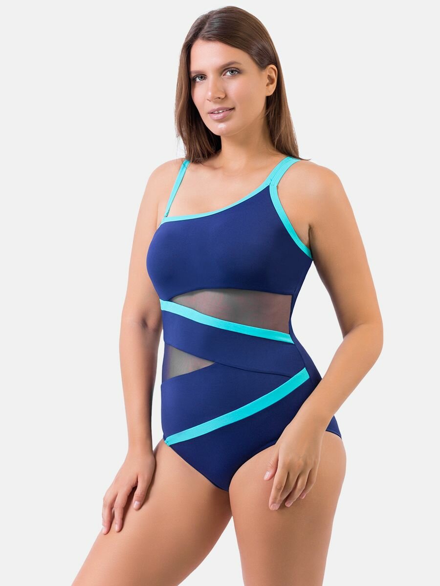 Утягивающий женский слитный купальник CSiman на одно плечо с сеткой, со съемными чашечками, темно-синий с голубым, размер 48-50 1 390 ₽