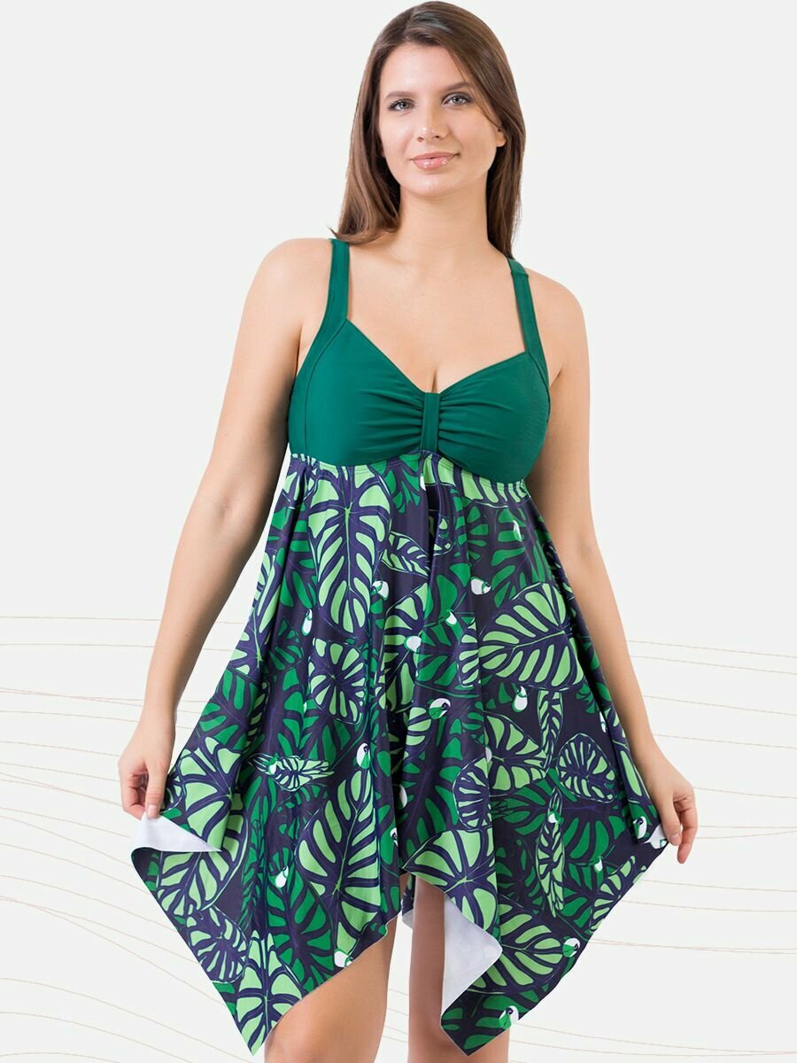 Купальник женский раздельный CSiman танкини для бассейна и пляжа, темно-зеленый, размер 60-62 3 340 ₽