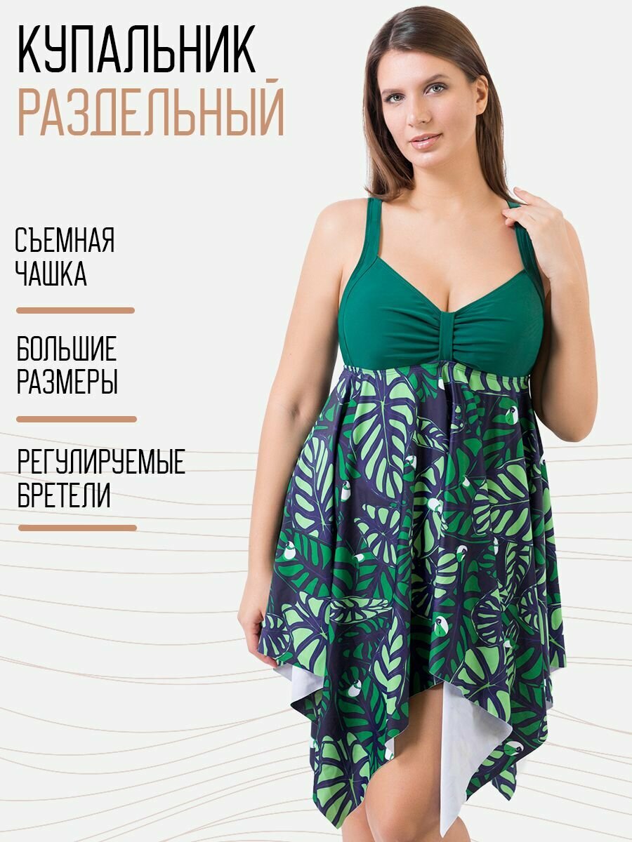 Купальник женский раздельный CSiman танкини для бассейна и пляжа, темно-зеленый, размер 64-66 3 340 ₽