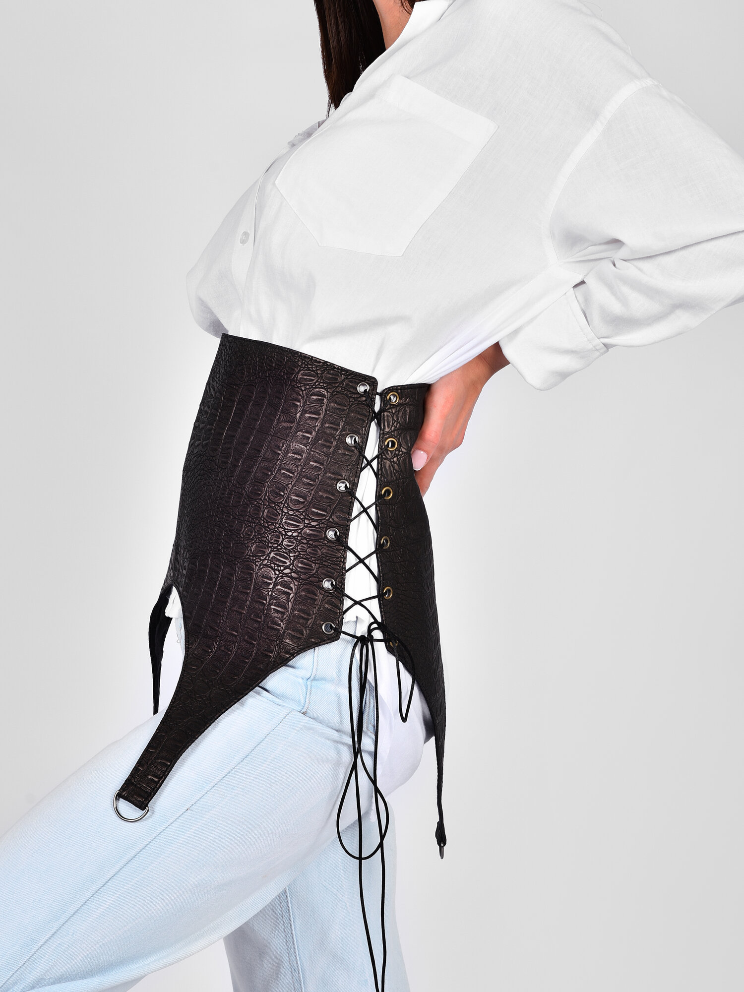 10 цен на Корректирующий корсет портупеи черный крокодил