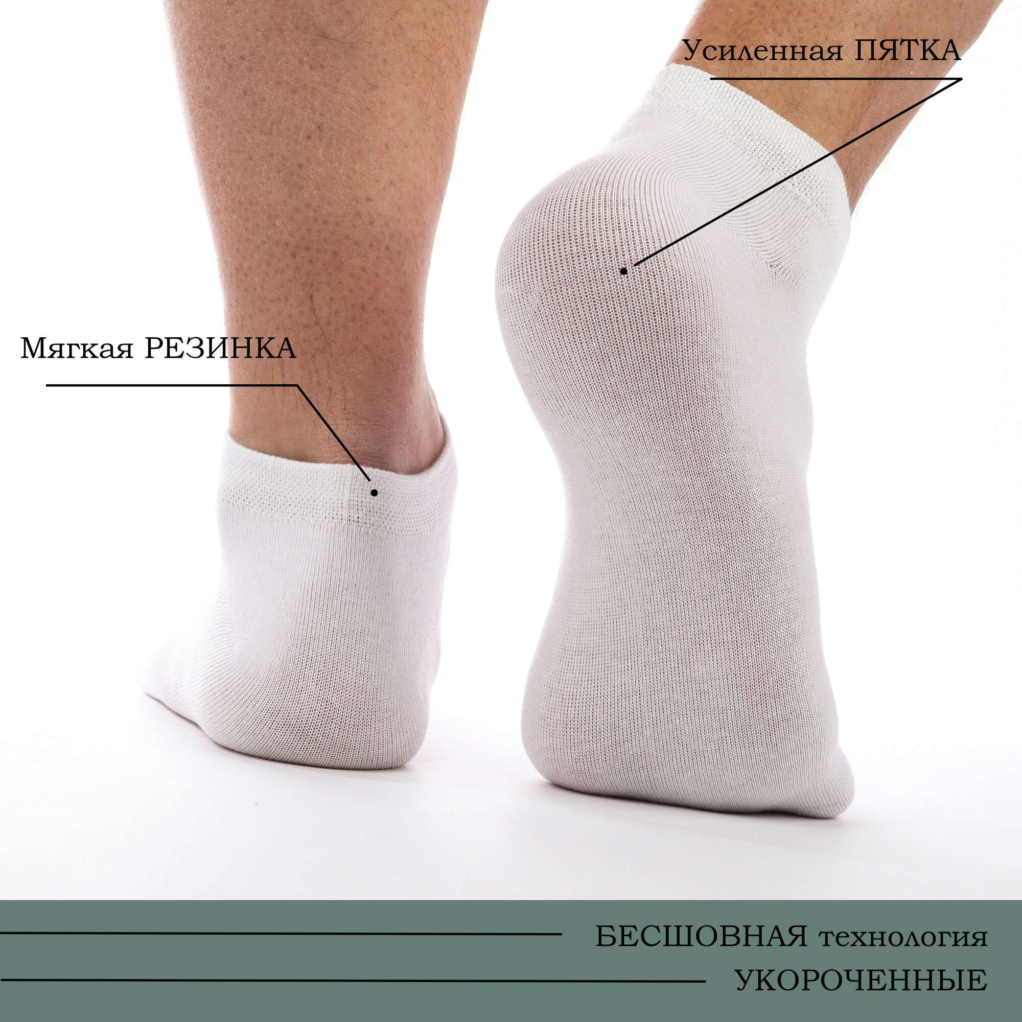 Носки мужские короткие из хлопка. Набор из 10 пар. Белые с серой подошвой. Размер 41-47 589 ₽