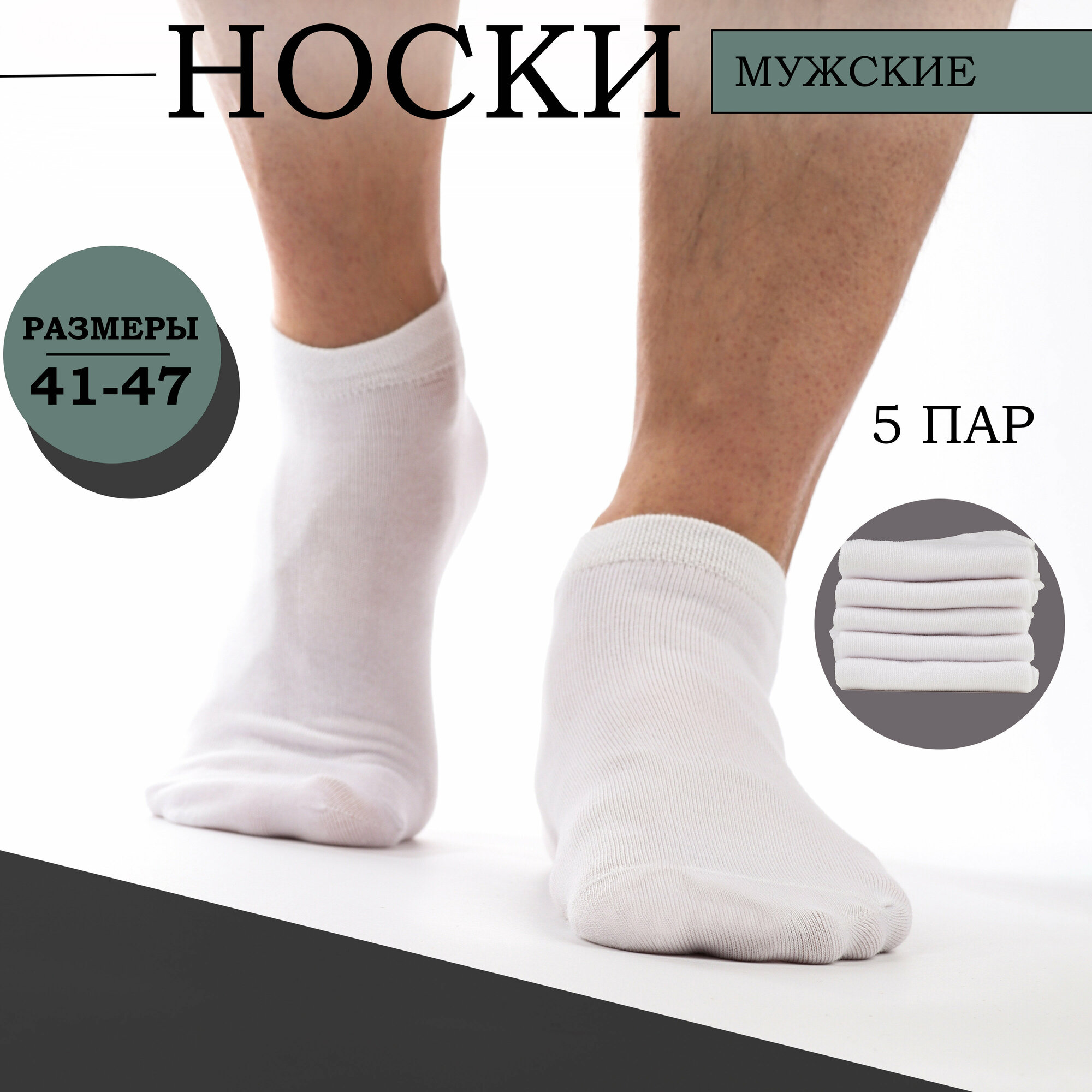 Носки мужские короткие. Цвет Белый. Набор 5 пар. Размер 41-47 информация: