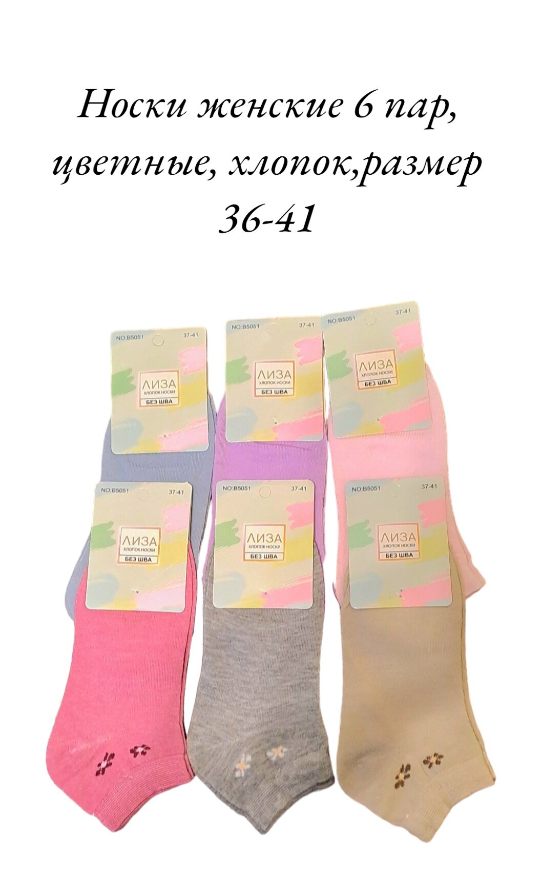 Носки женские Лиза, хлопок,набор 6 пар, размер 35-41 информация: