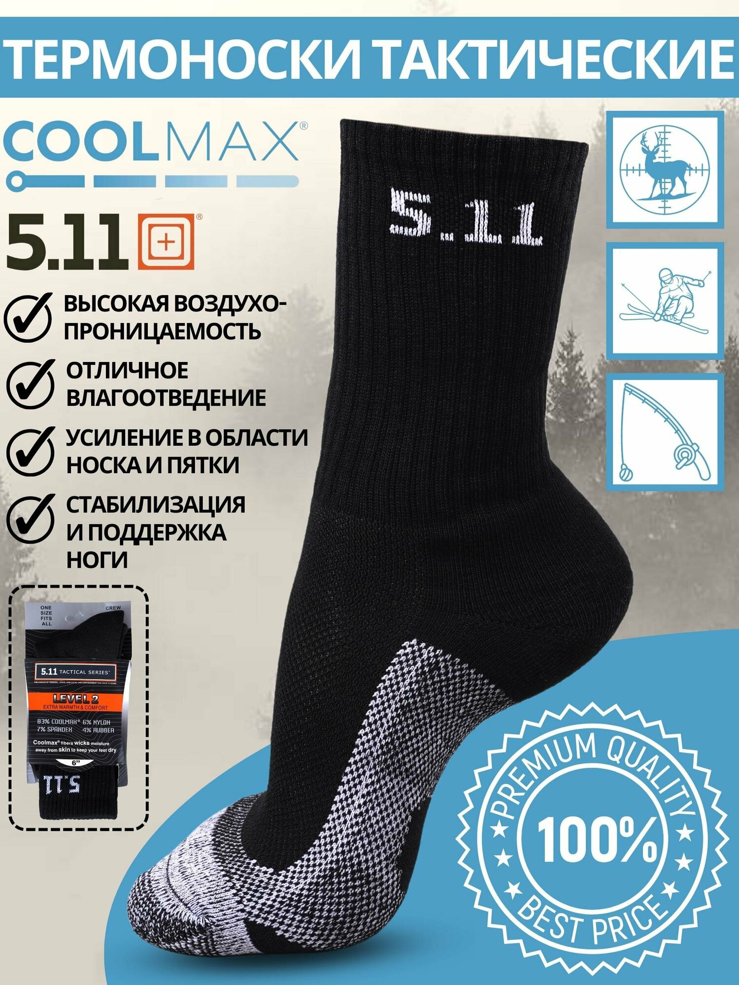 10 цен на Носки 5.11 Tactical, 1 пара, классические, на Новый год, на 23 февраля, быстросохнущие, утепленные, размер 39-44, черный