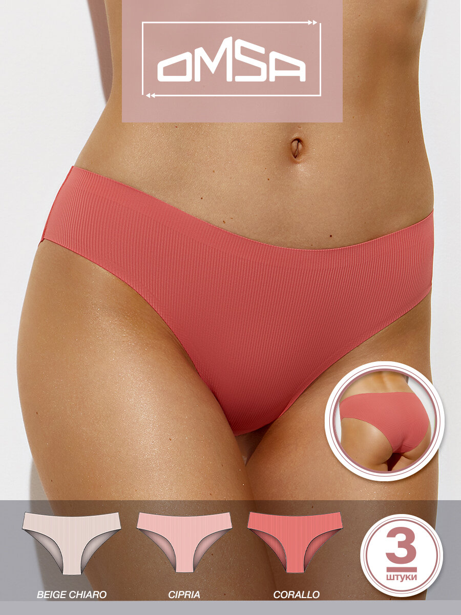 Отзывы на Трусы-слипы OMSA OmD 2215B Invisible Ribana Slip в рубчик со средней линией талии и узкой боковиной цвет Beige Chiaro/Cipria/Corallo размер 46 (M)