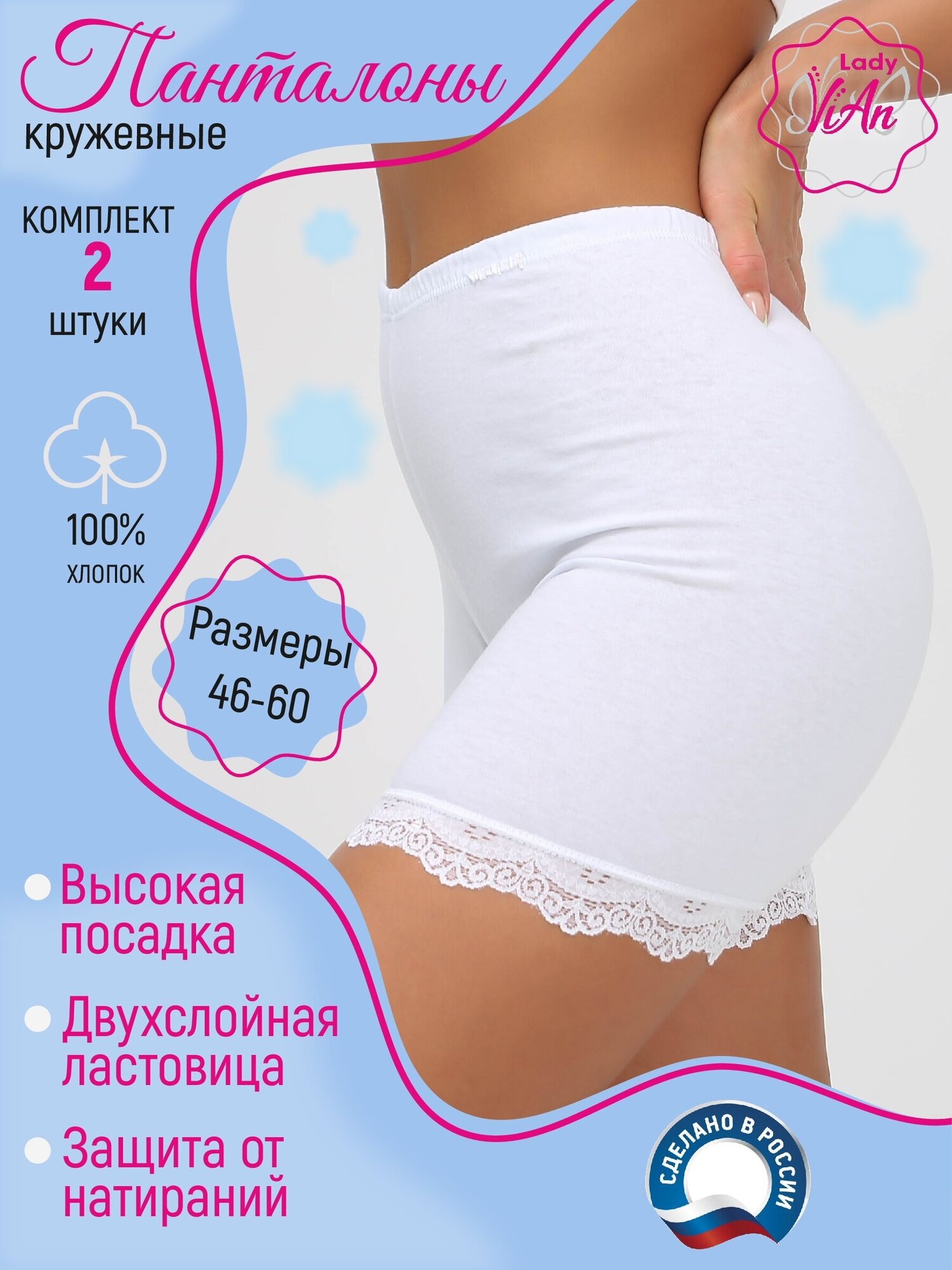 10 цен на Панталоны хлопковые набор "Кружево" белые размер 56