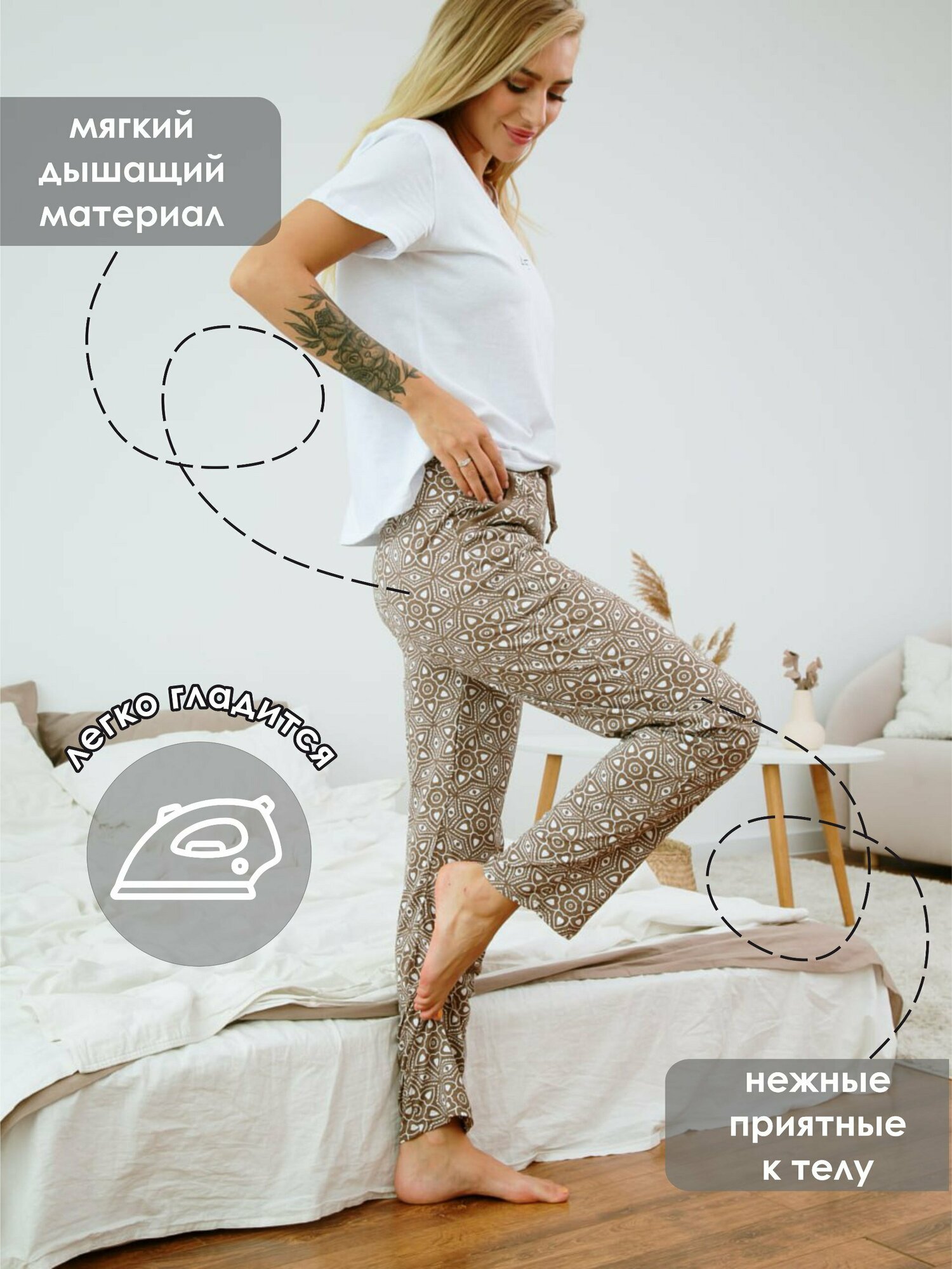 Брюки женские Ohana market/Женские штаны/Для дома/Пижамные брюки/Хлопок 100%, размер 46 796 ₽