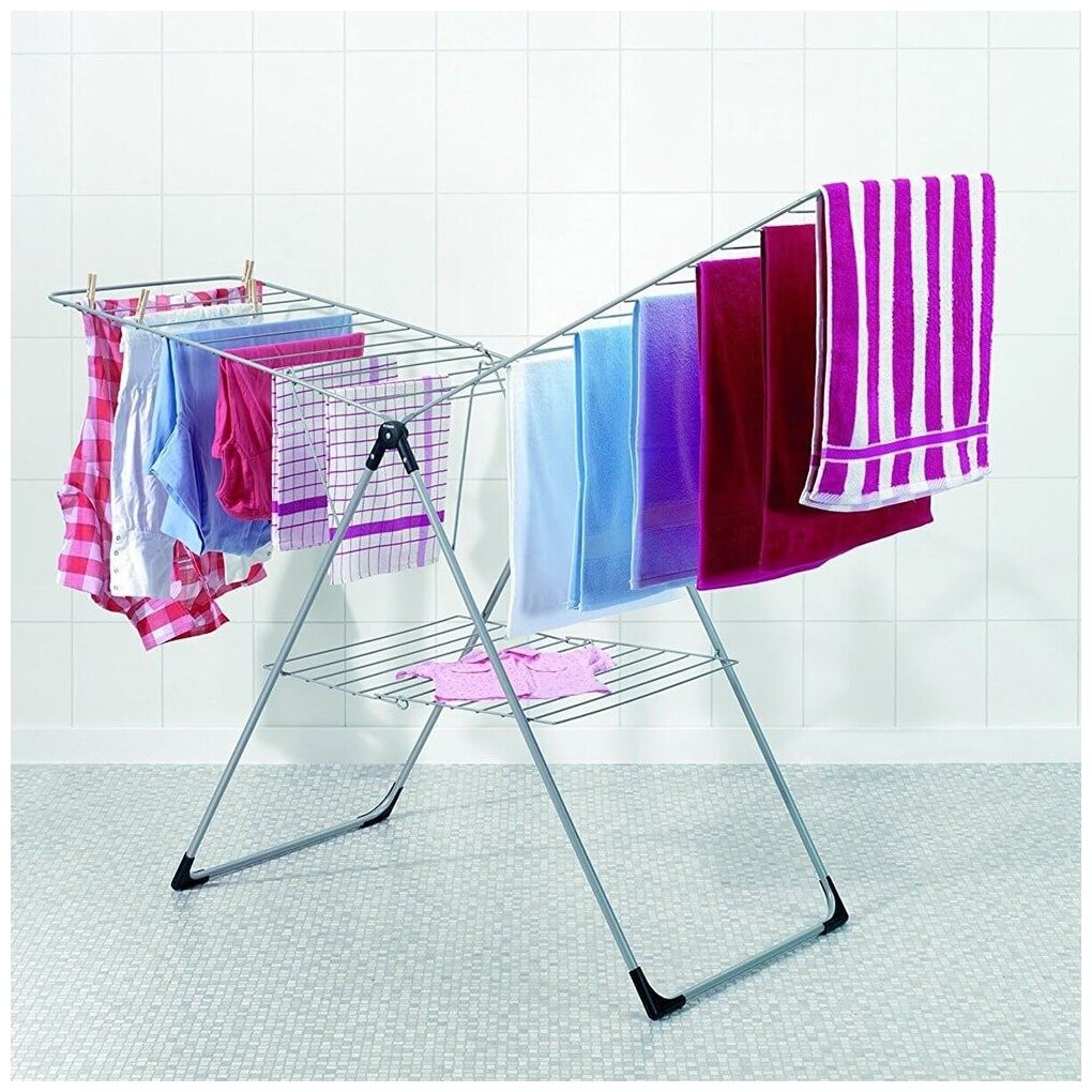 Сушилка для белья /вешалка для одежды напольная, 129х61х61, складная, 2 уровня, цвет серый